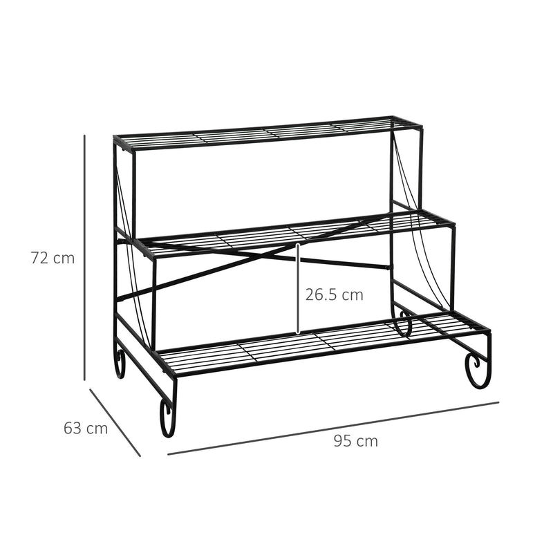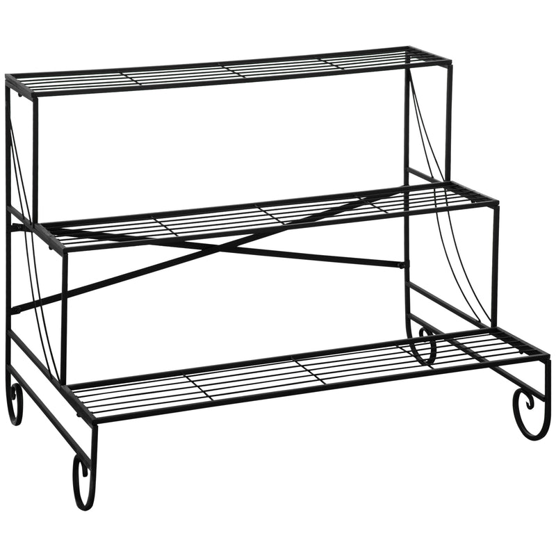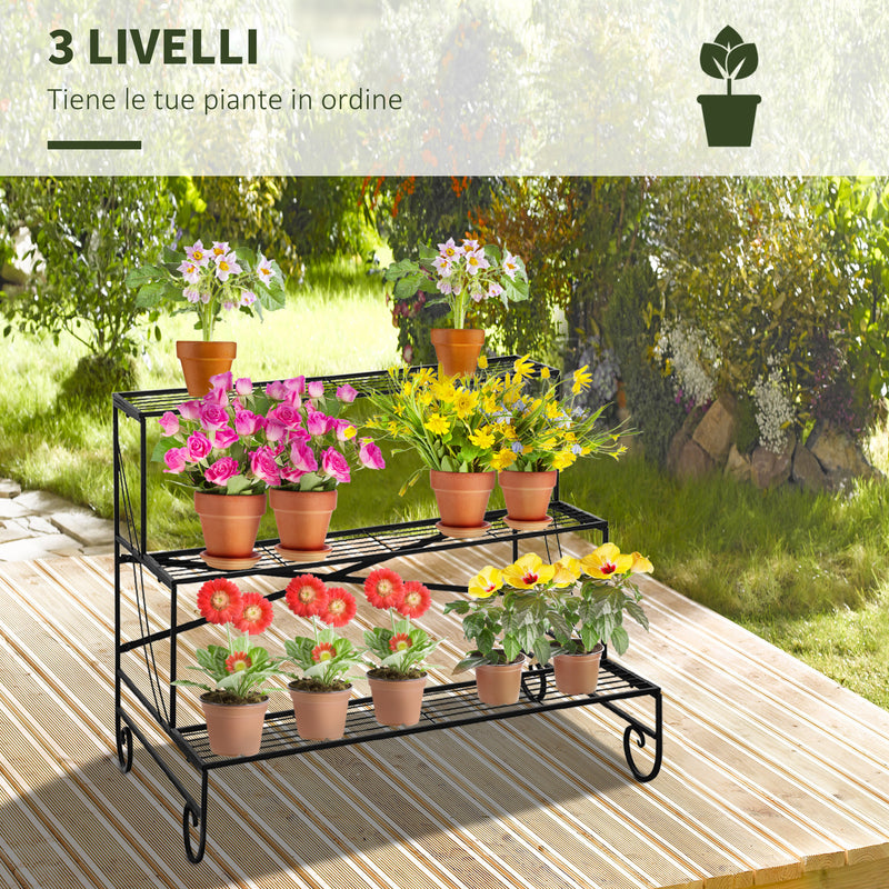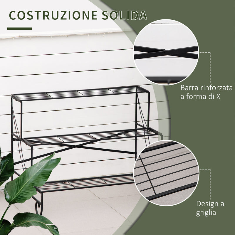 Portapiante 3 Ripiani 95x 63x 72 cm in Ferro Battuto Nero