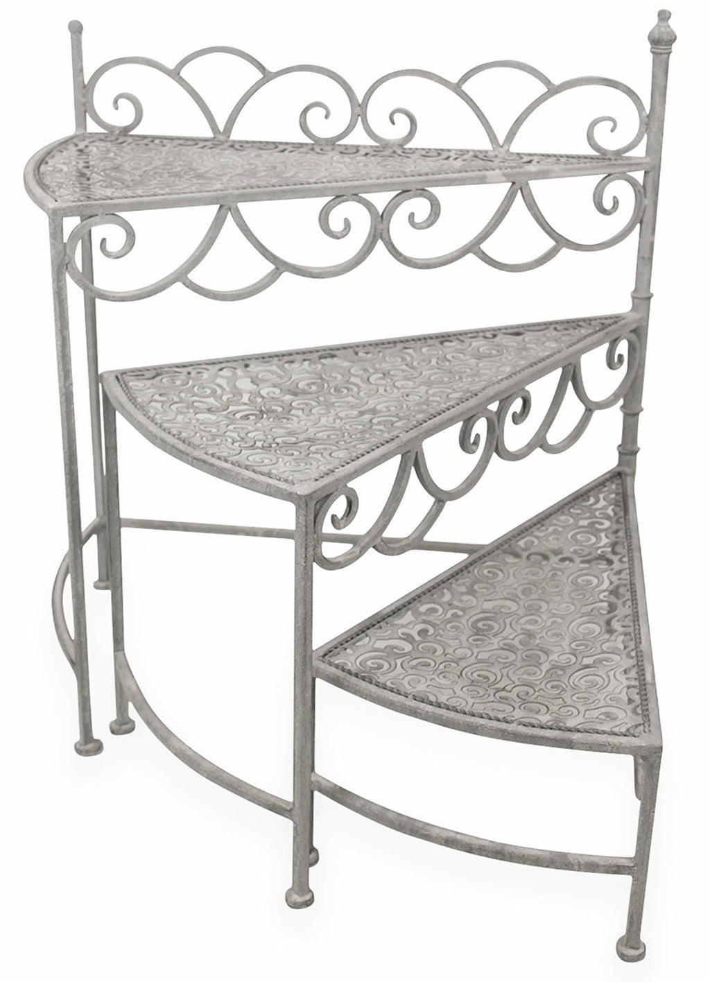 Portapiante a Scaletta da Esterno in Ferro Battuto 3 Ripiani Soriani Grigio Chiaro