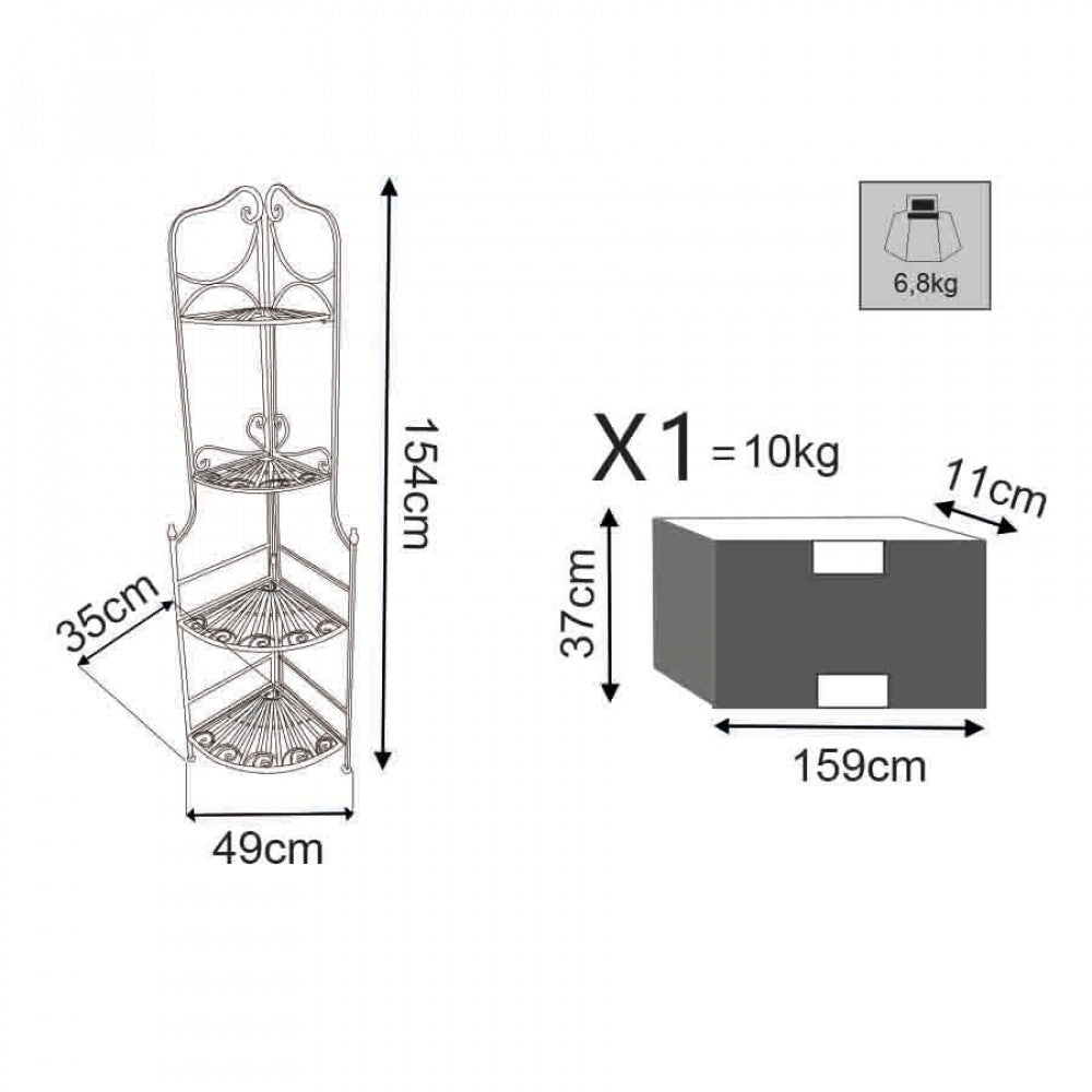 Portapiante Charlotte 4 Piani Bianco Antico 49x35x154 h cm in Acciaio Bianco