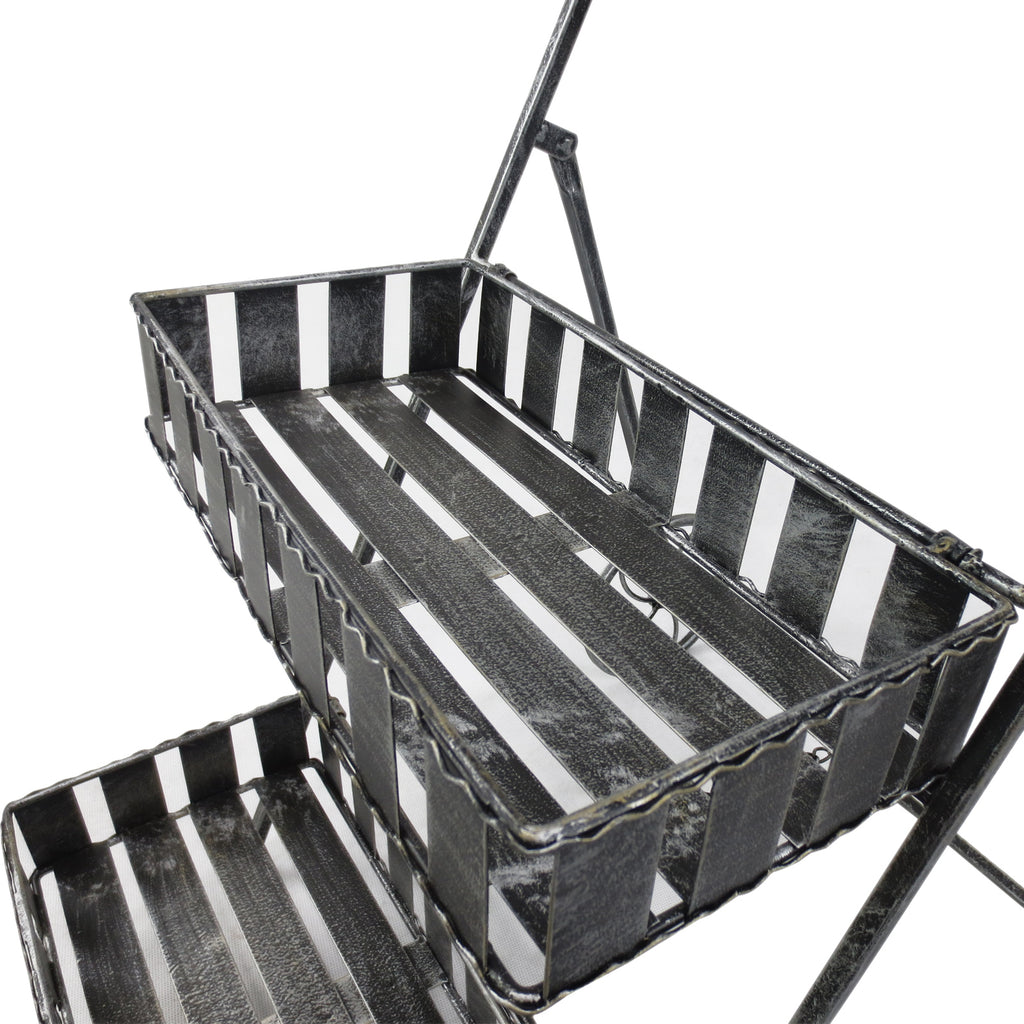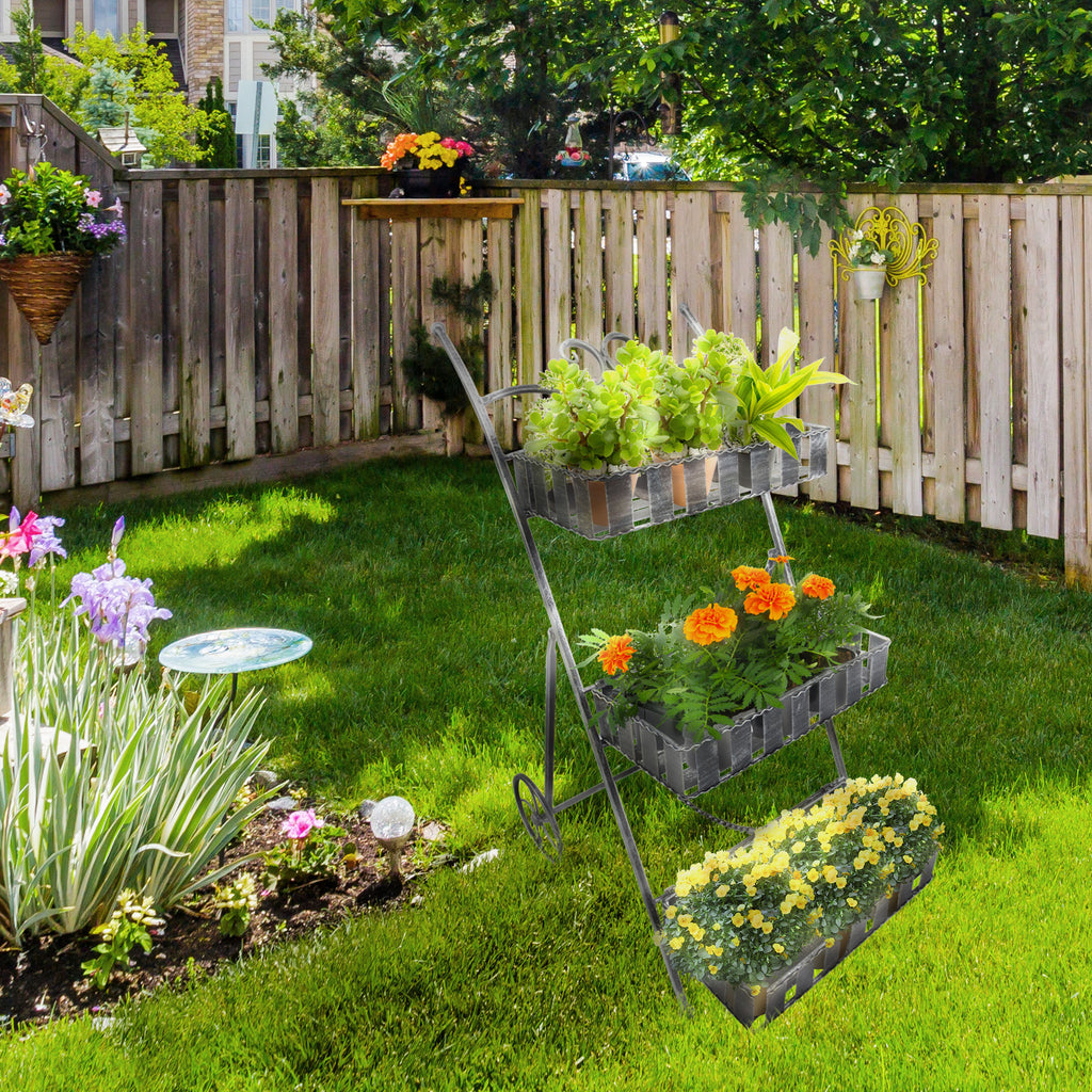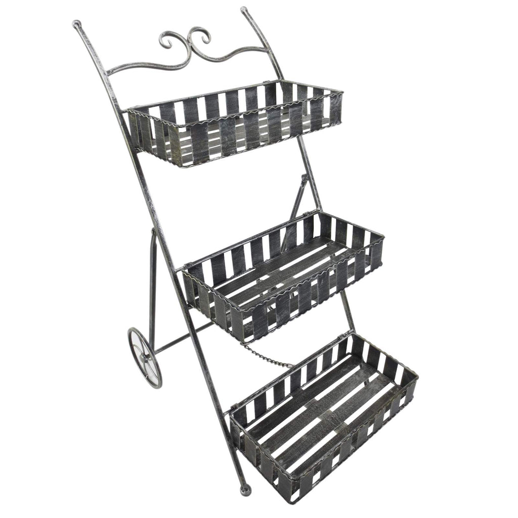 Portapiante Fioriera da Giardino a 3 Livelli con Ruote Argento 53x39x79 cm