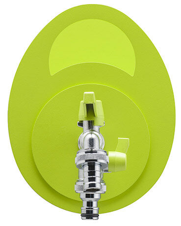 Pratico portatubo a muro che permette di trasformare un semplice rubinetto in un elemento funzionale e decorativodove riporre ordinatamente il tubo da innaffio, tenendolo sempre collegato al rubinetto secondario.