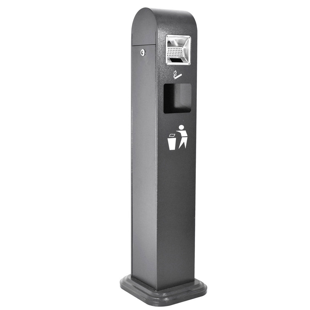 - Posacenere a colonna bifacciale con cestino in metallo verniciato a polveri grigio gotico