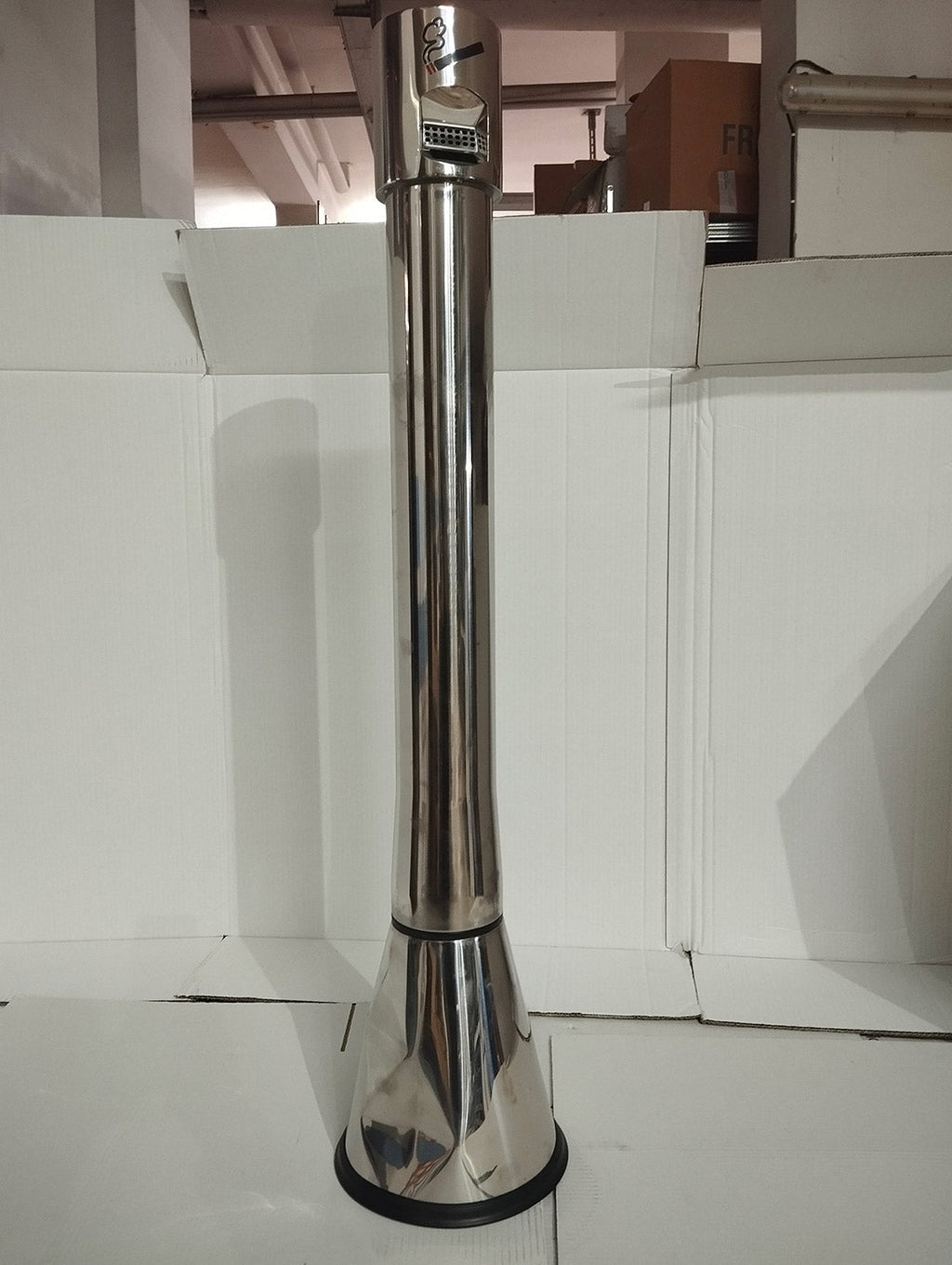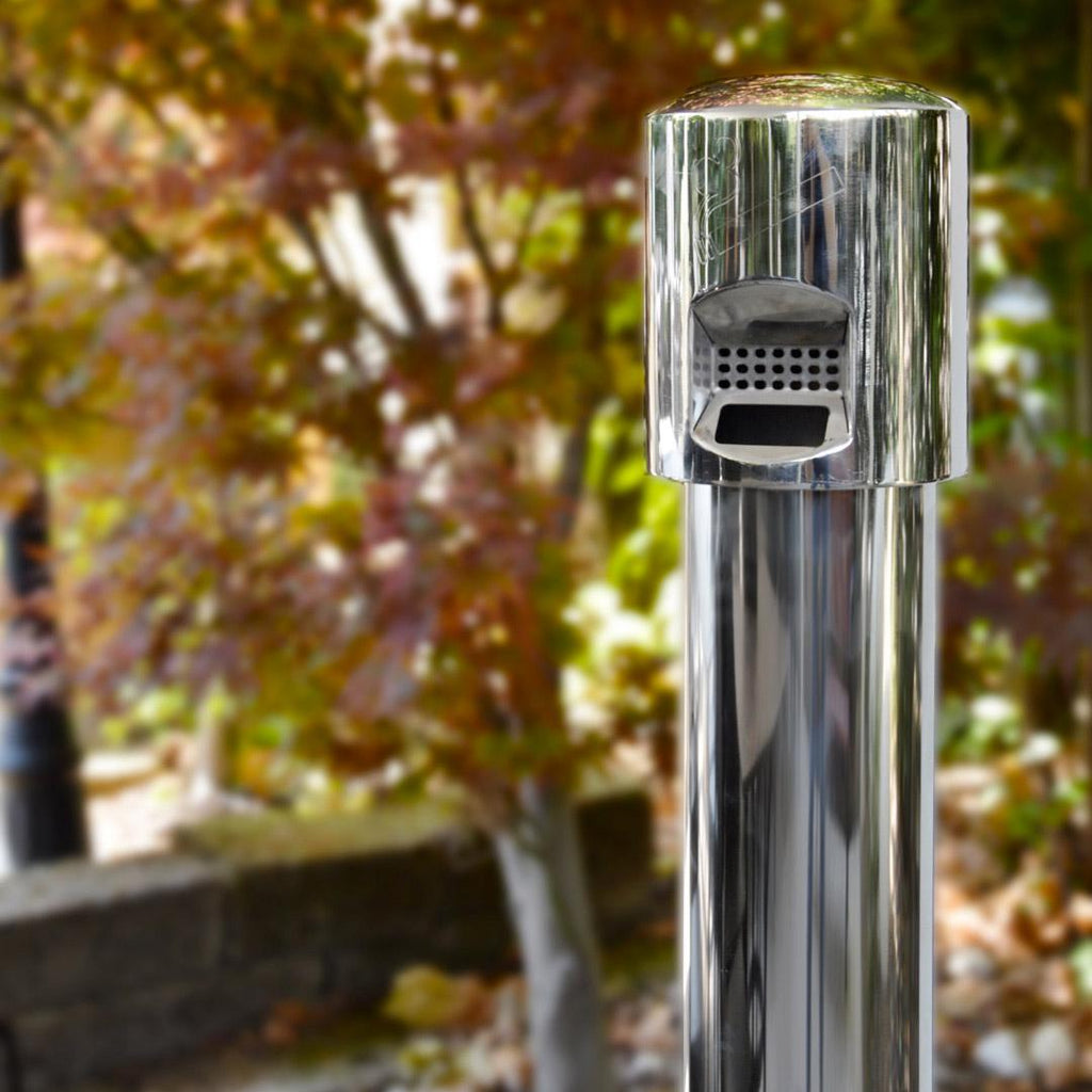 - Posacenere a colonna per esterno realizzato in acciaio cromato