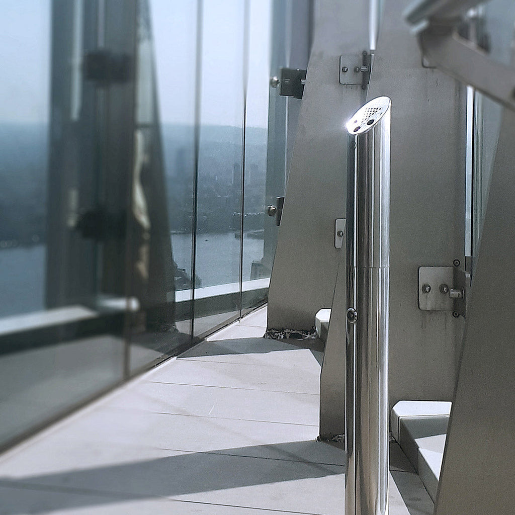 - Colonna con griglia spegni sigarette e fori per gettare i mozziconi spenti posizionati nella parte superiore