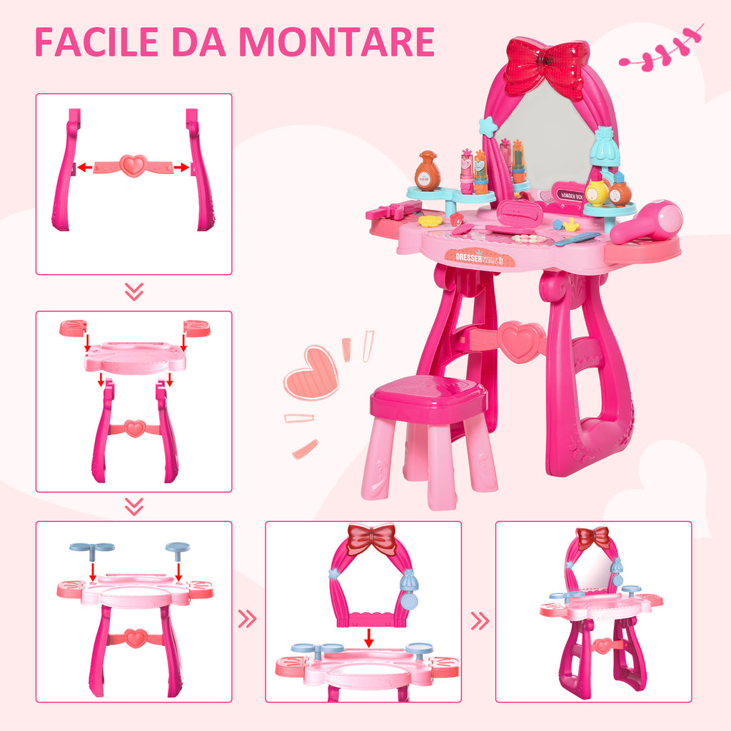 Postazione Trucco Specchiera Giocattolo per Bambini con Specchio e Accessori Rosa e Rosso