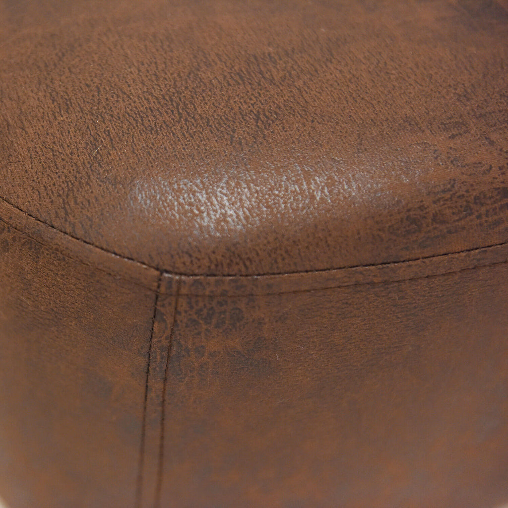 Pouf con rivestimento in tessuto similpelle marrone, imbottitura in poliuretano e 4 gambe in legno massiccio.