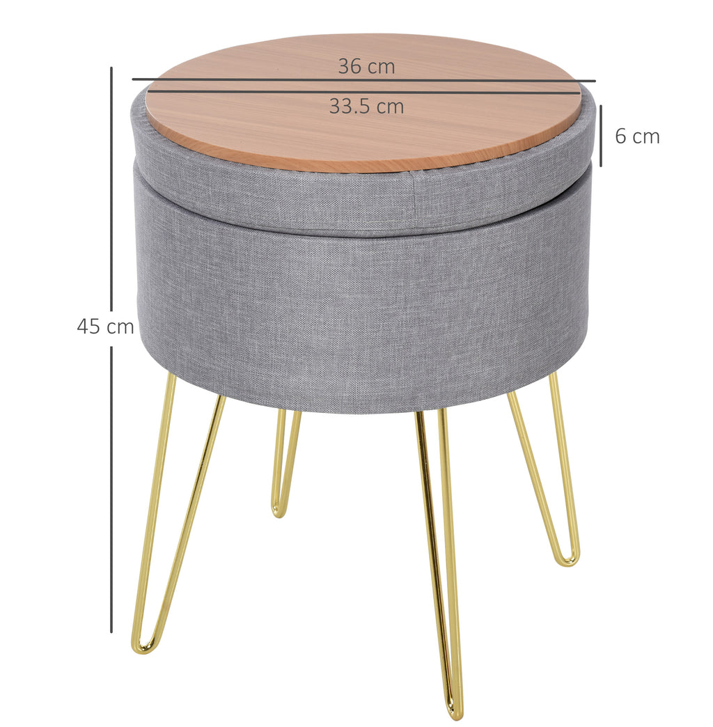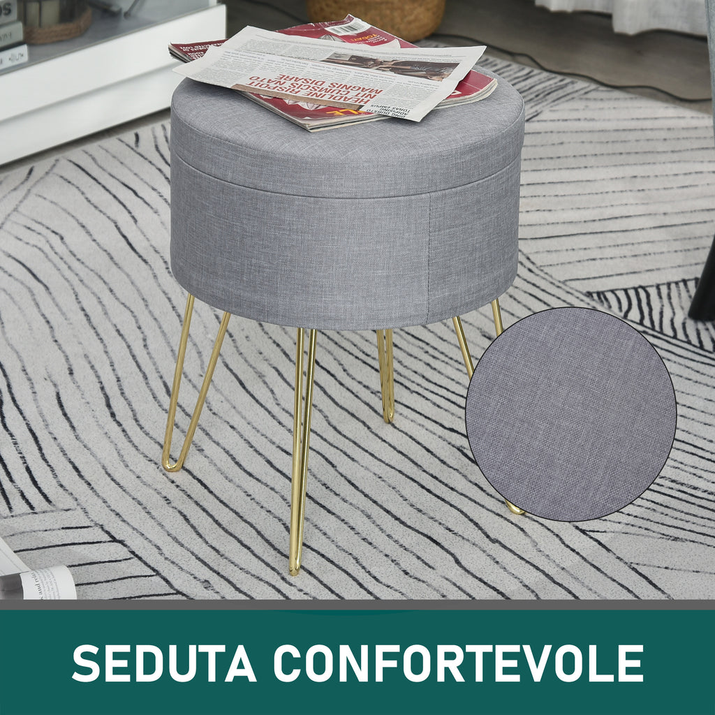 Pouf Contenitore 2 in 1 36x36x45 cm in Metallo Oro e Tessuto Grigio