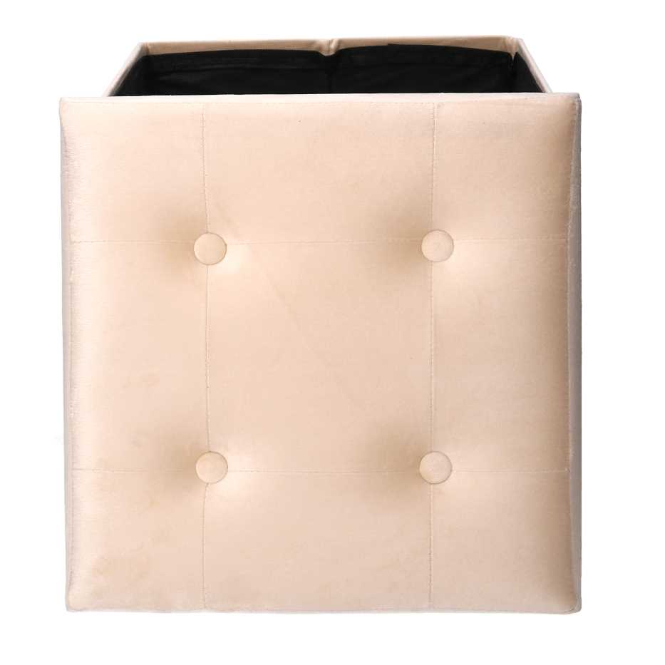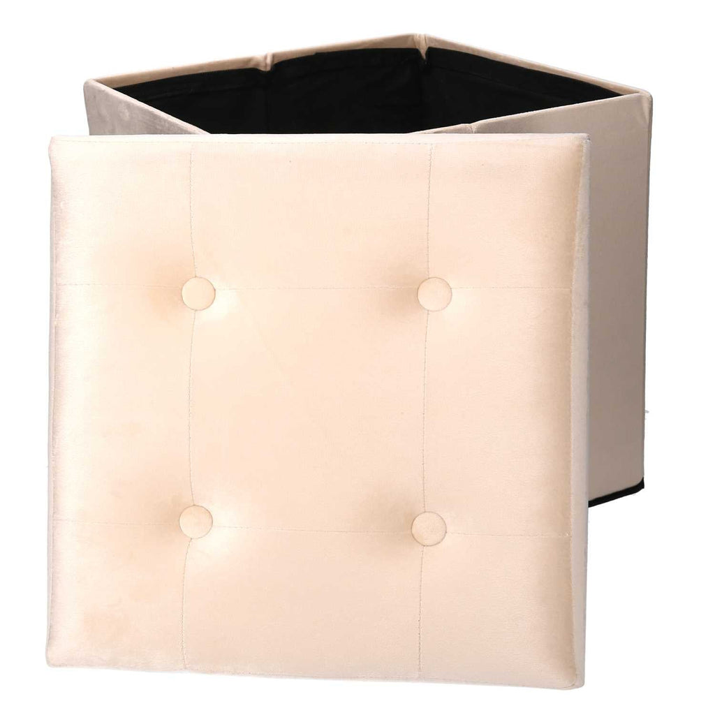 Pouf Contenitore Pieghevole 38x38xh38 cm in Velluto Crema