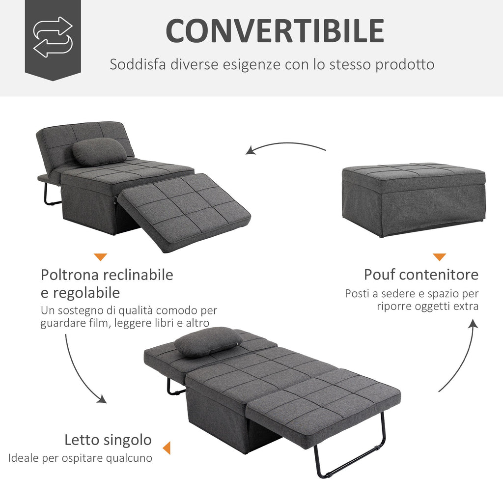 - DESIGN 3 IN 1: Questa struttura può essere trasformata da poltrona reclinabile a letto singolo e anche in pouf contenitore