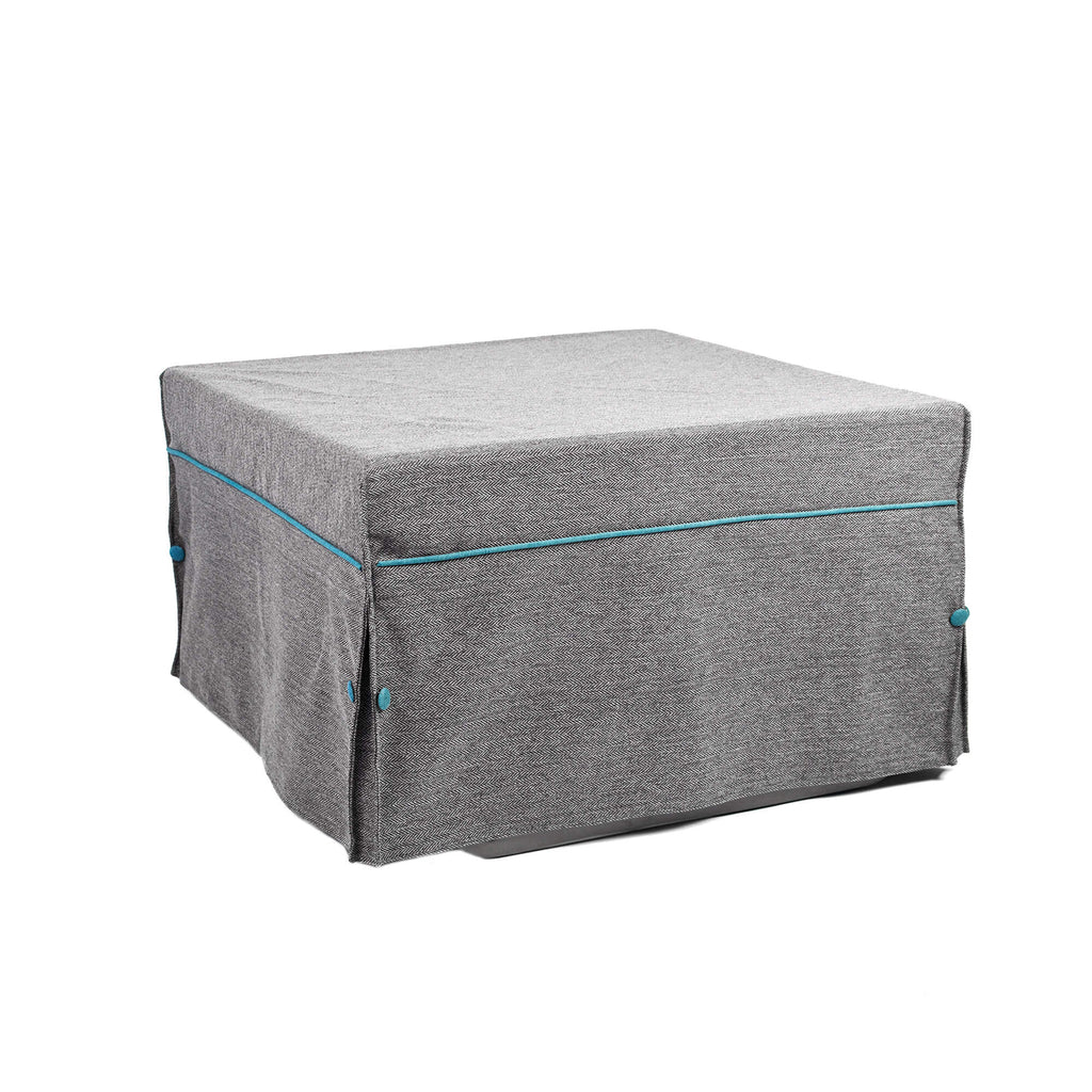 Il Puf Letto pieghevole ha la stessa funzione del divano-letto ma molto più pratico e gradevole alla vista. È infatti composto da meccanismi e materasso ripiegati su loro stessi, resi invisibili dal tessuto spigato che li nasconde con eleganza.