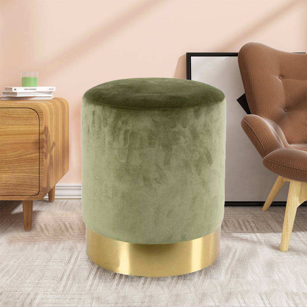 Dai un tocco moderno e raffinato agli interni di casa tua con questo nuovo e bellissimo pouf in velluto e base decorativa in metallo.