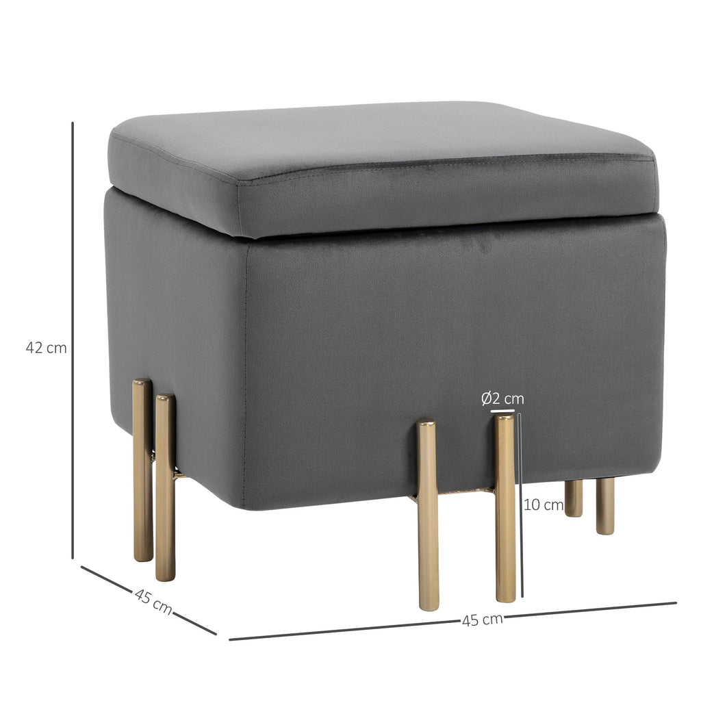 Pouf Poggiapiedi in Tessuto Poliestere 45x45x42 cm Grigio Scuro