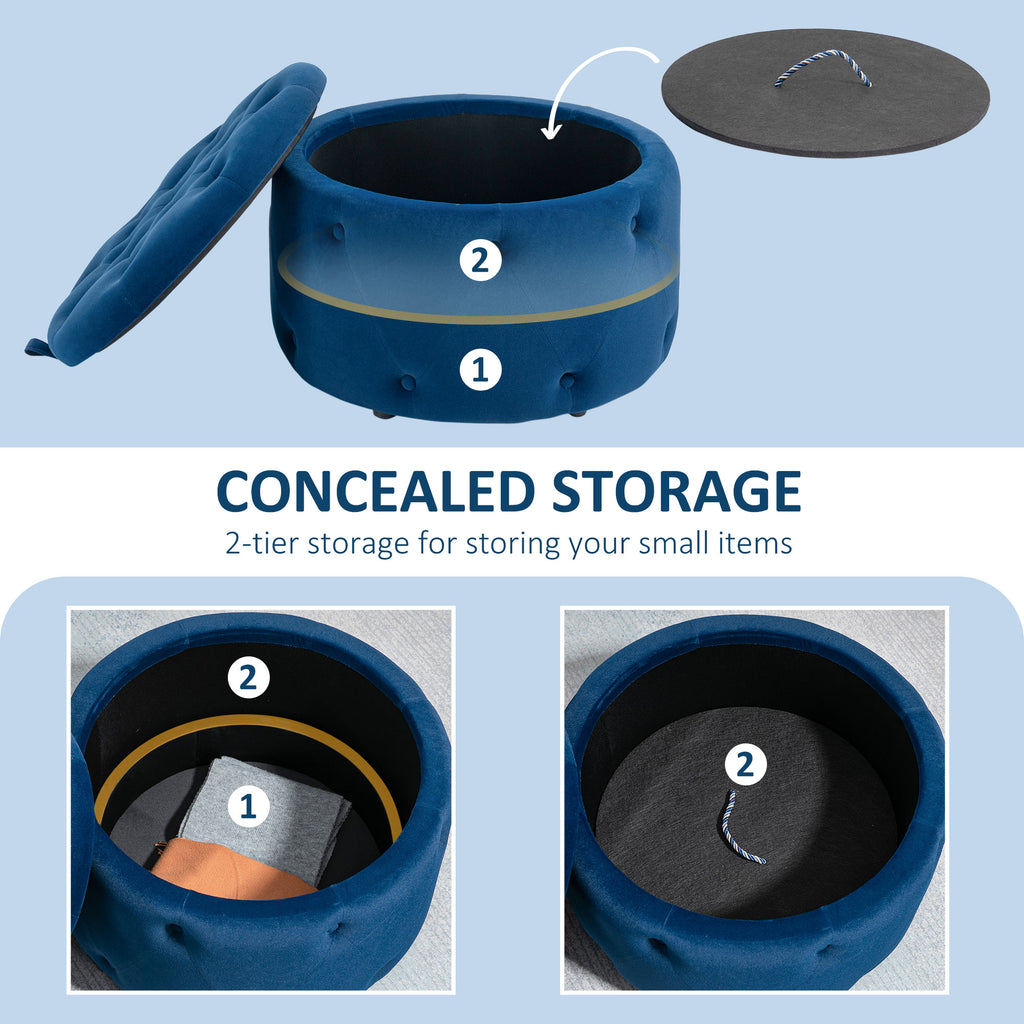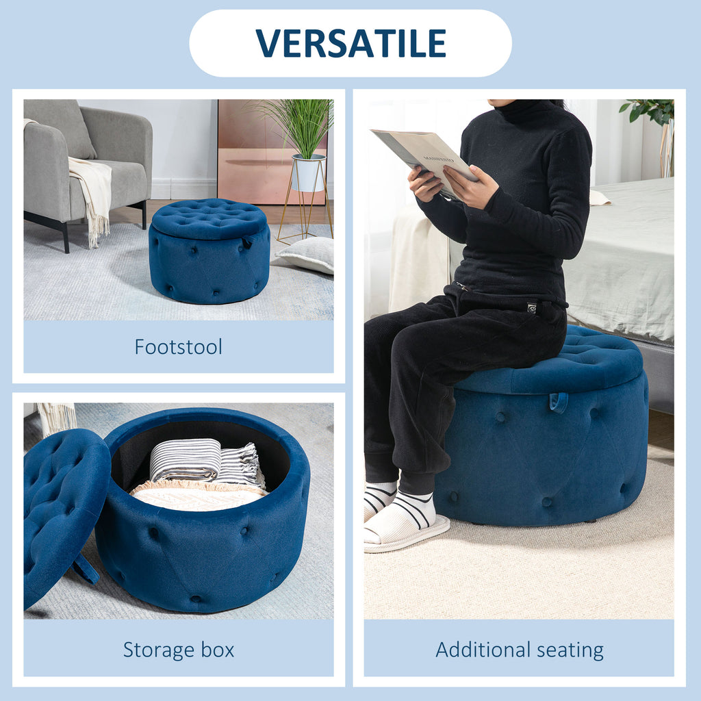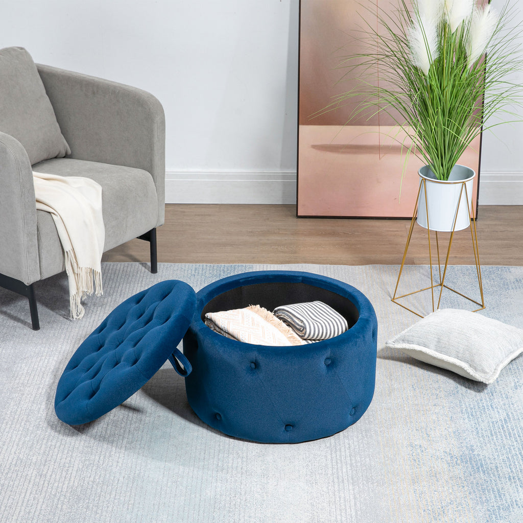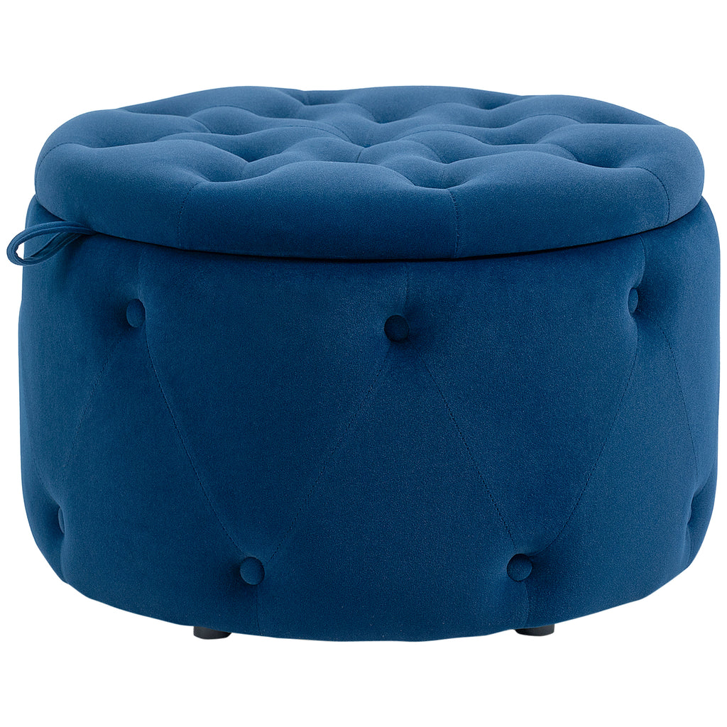 Pouf Poggiapiedi Ø60x40 cm in Velluto Blu Scuro