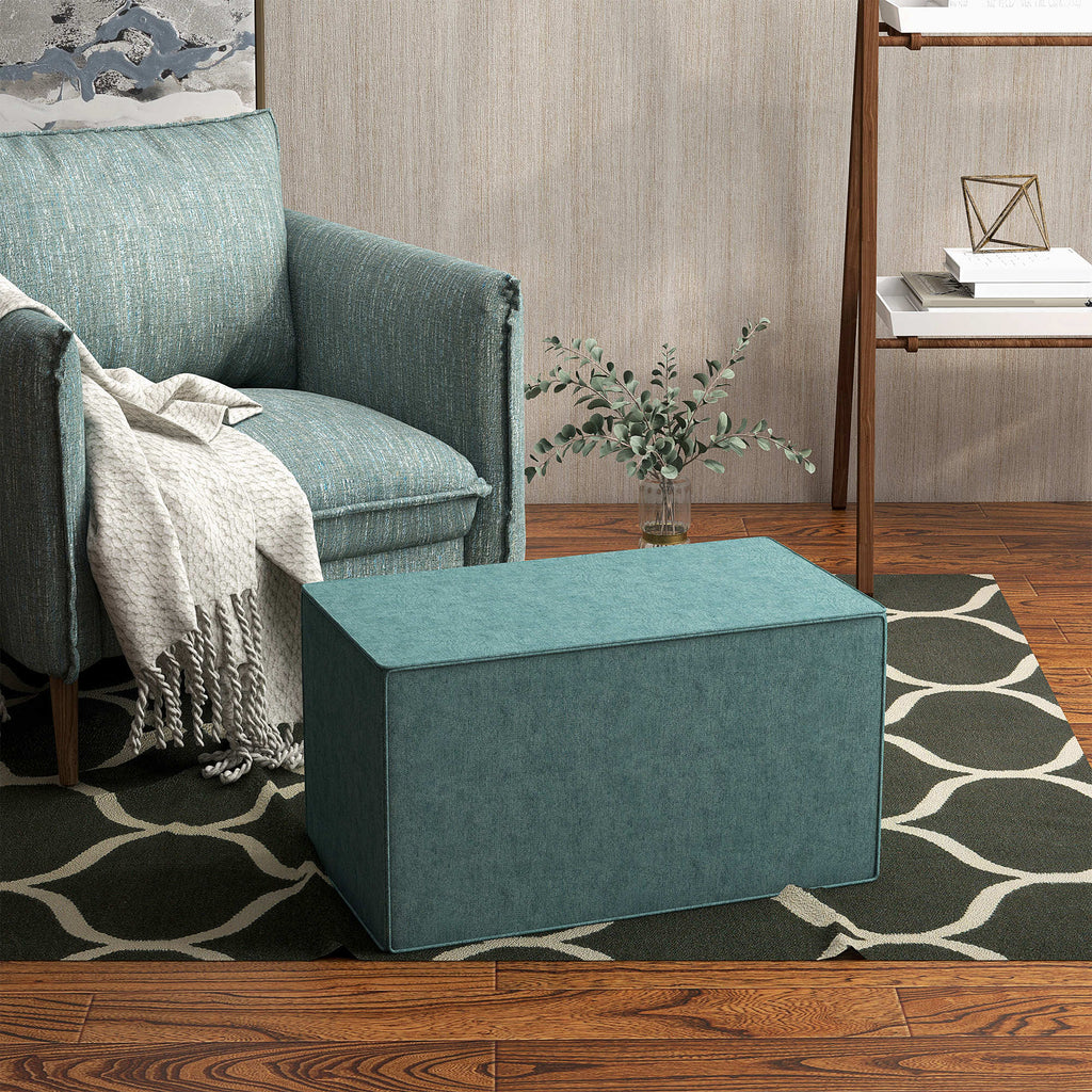 Pouf Poggiapiedi Rettangolare 75x41x41 cm Rivestimento Rimovibile in Tessuto Effetto Lino Verde