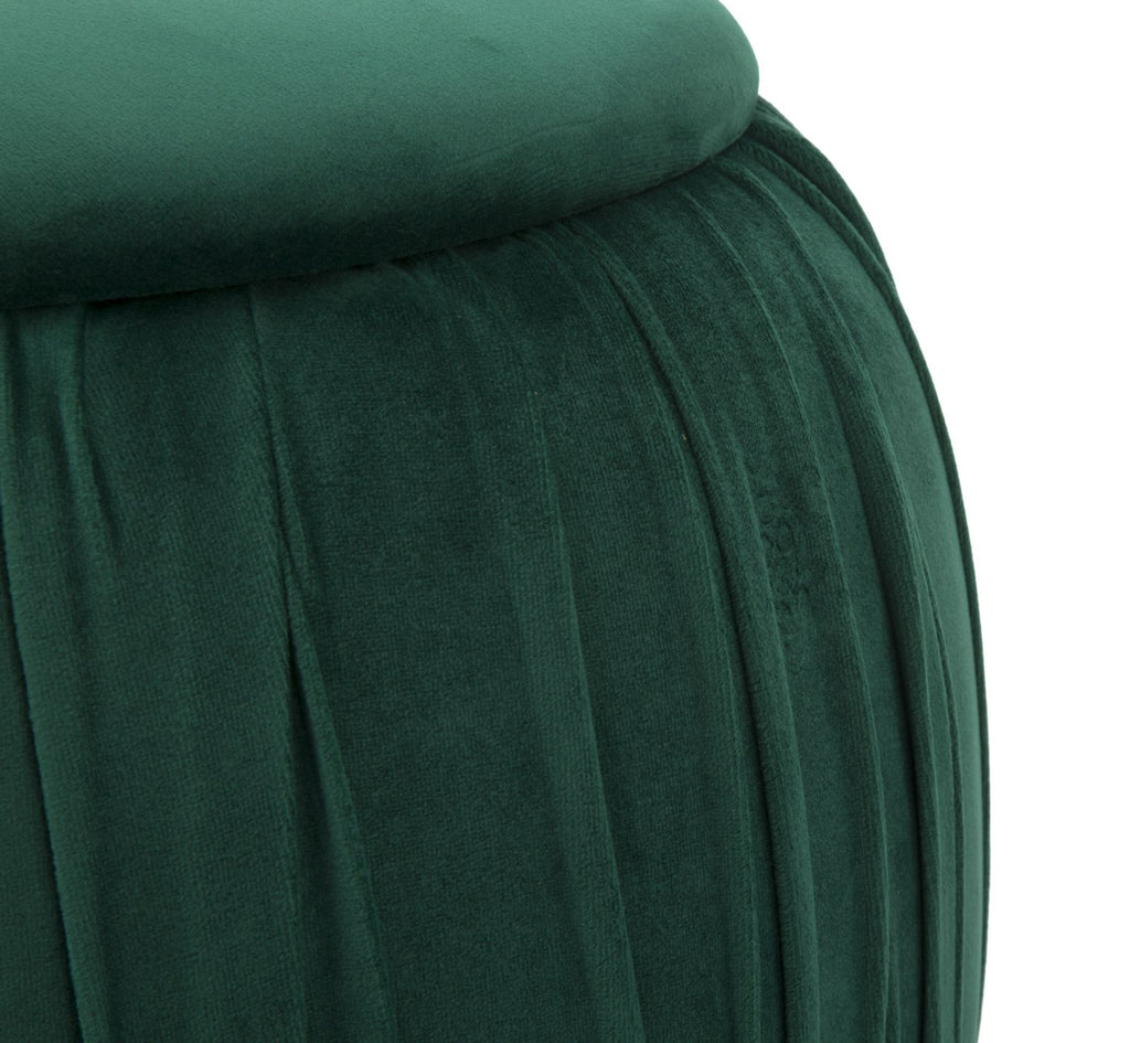 Puff Contenitore Paris Verde Ø41x41 cm Legno Spugna e Velluto Sintetico Verde e Oro