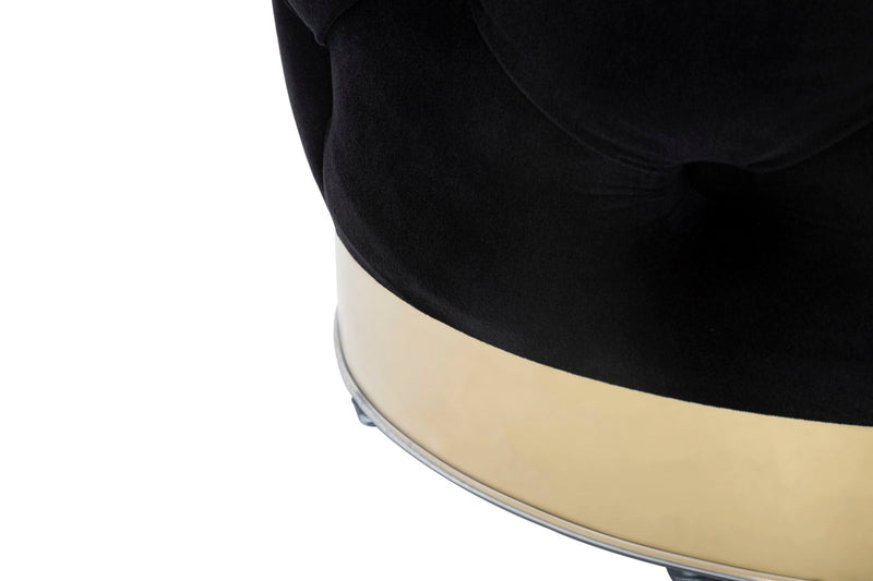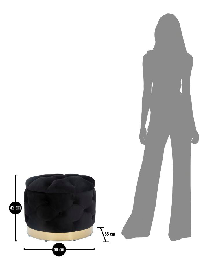 Puff Contenitore Rich Nero Ø55x42 cm in Legno Spugna Poliestere e Acciaio Nero e Oro