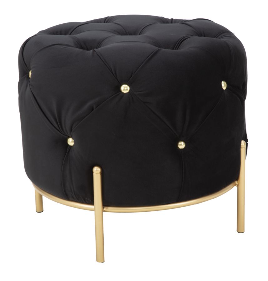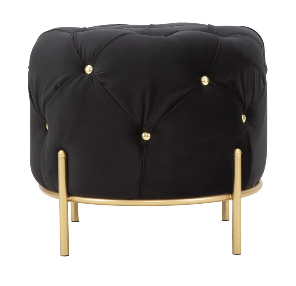 Puff Diamond Glam Nero Ø45x40 cm in Ferro e MDF e Spugna e Poliestere Nero e Oro