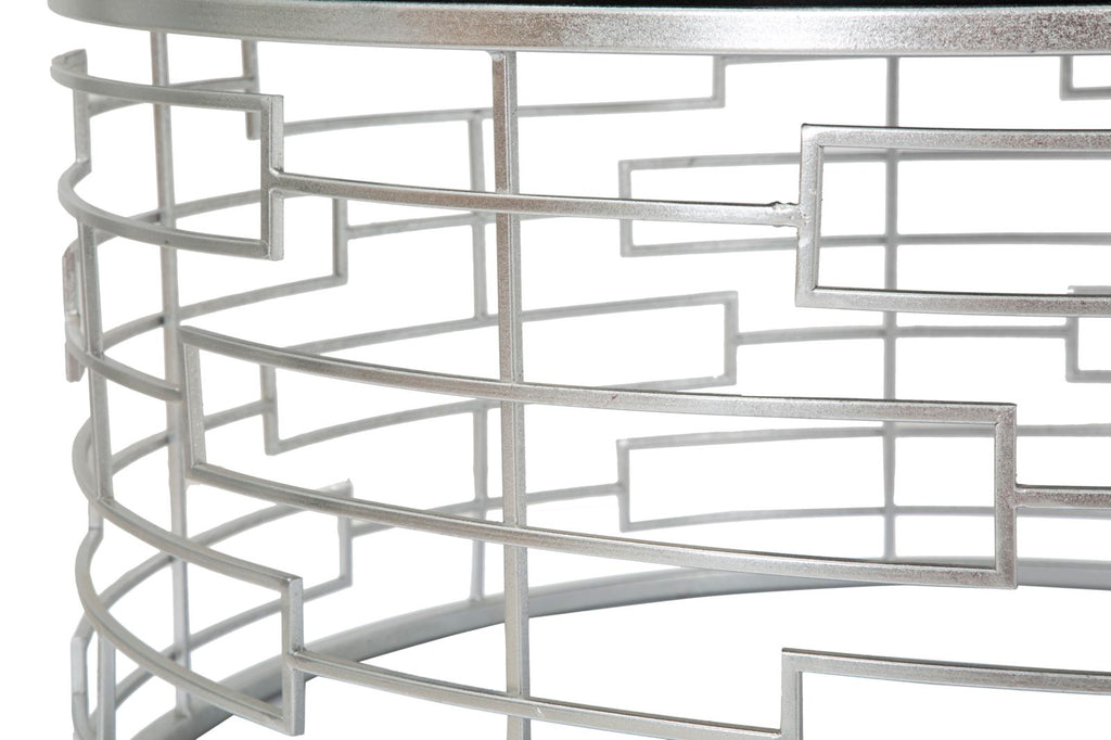Puff Ice Ø91,5x47 cm in Ferro e MDF e Spugna e Poliestere Argento e Nero