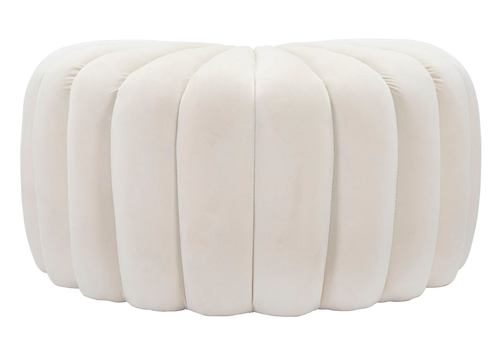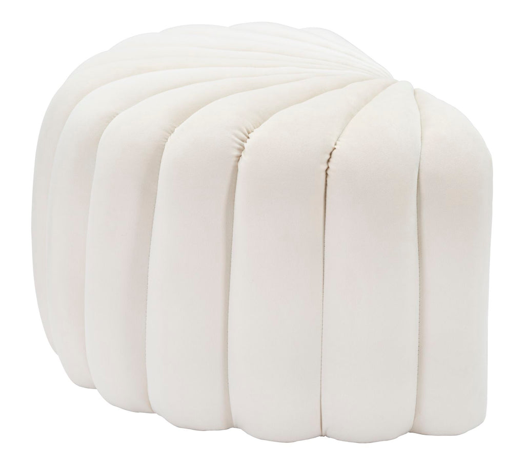 Elegante ed originale pouf in tessuto imbottito color crema. Il design richiama una conchiglia per offrire un tocco esotico ad ogni tipologia di arredamento.