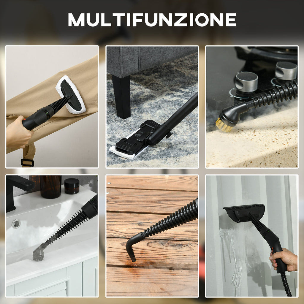 - ELEVATA POTENZA ED EFFICIENZA: Con una potenza di 1500W questo pulitore a vapore assicura una pulizia efficace, con un'emissione di 50g/s di vapore e una pressione di 3.5 bar. Si scalda in soli 8-10 minuti dopo aver collegato il cavo di alimentazione e genera un flusso di vapore da 110±5°C per 20-25 minuti