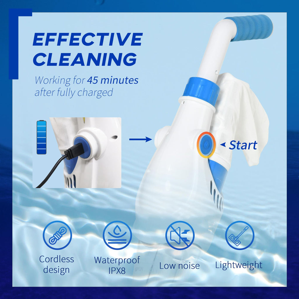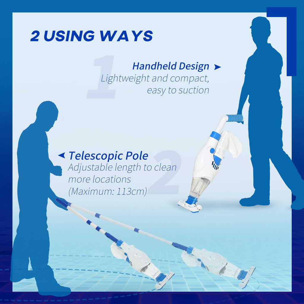 Pulitore Aspiratore per Piscine a Batteria con Palo Telescopico Bianco e Blu