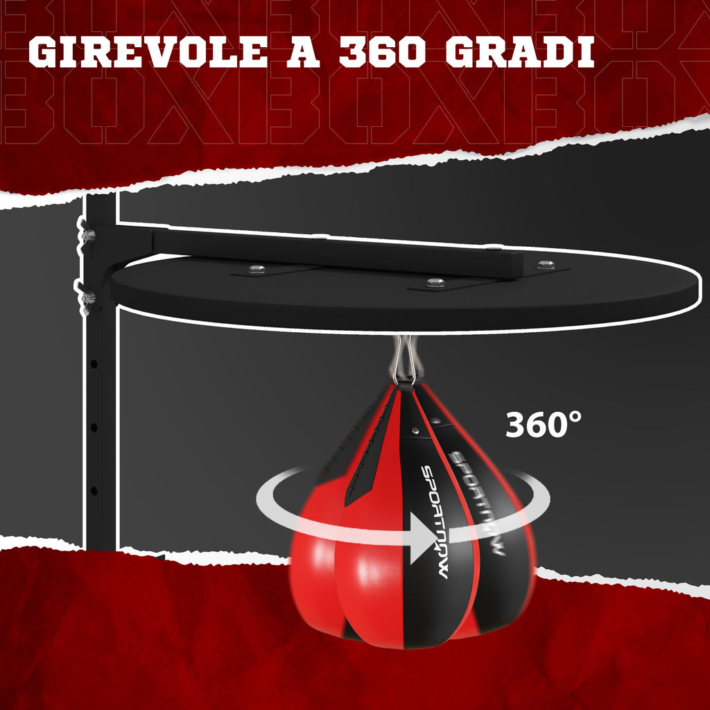 Punching Ball a Muro con Speed Bag Girevole a 360° e Regolabile su 7 Altezze Nero e Rosso