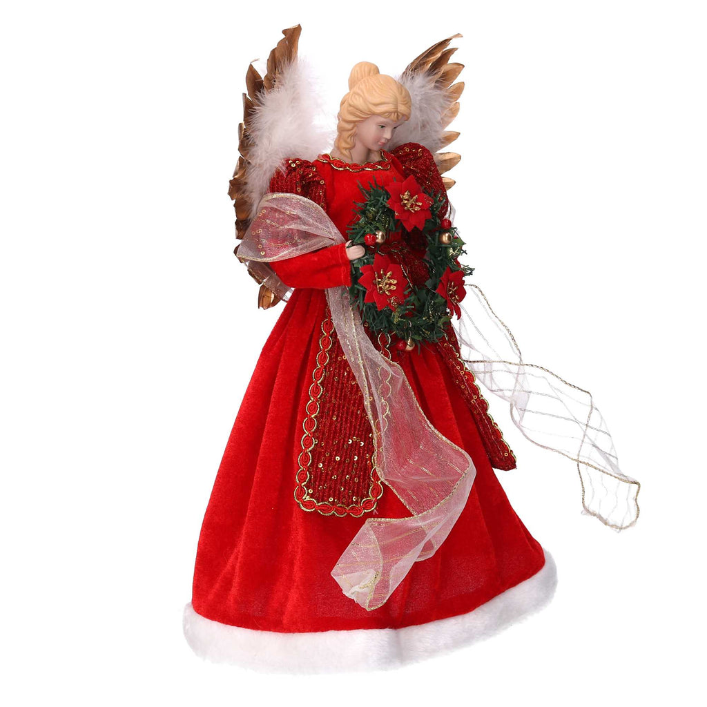 Puntale tessuto angelo con ghirlanda rosso cm Ø26xh40