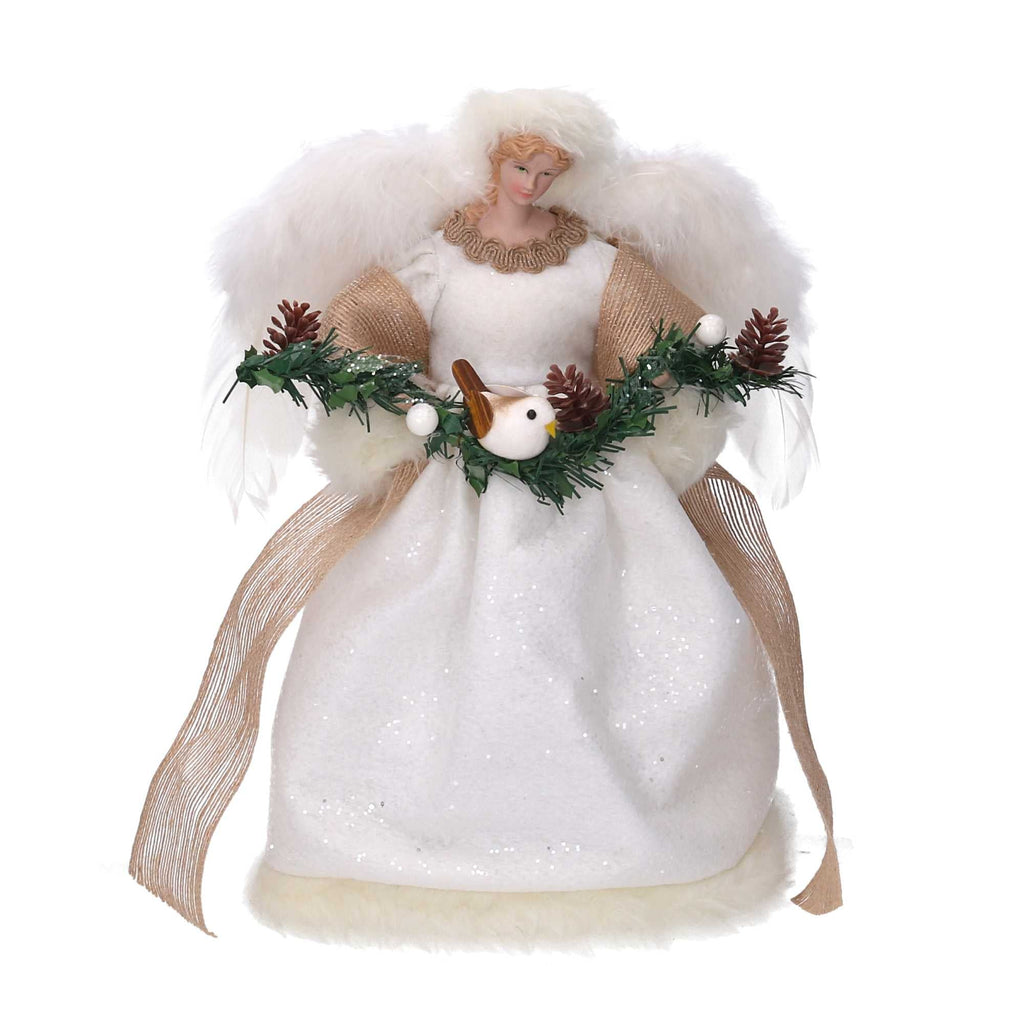 Puntale tessuto angelo con uccellino bianco cm Ø22xh30