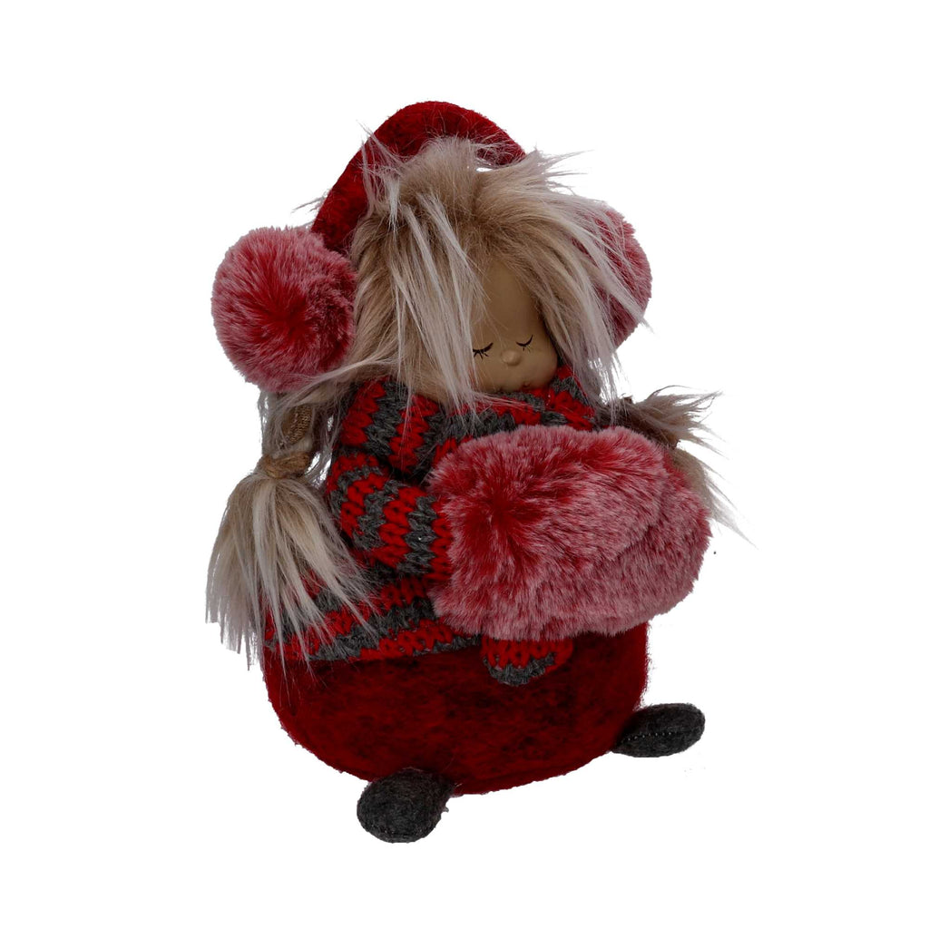 Pupazzo bambina tessuto rosso cm 12x12xh22