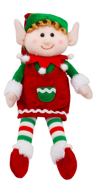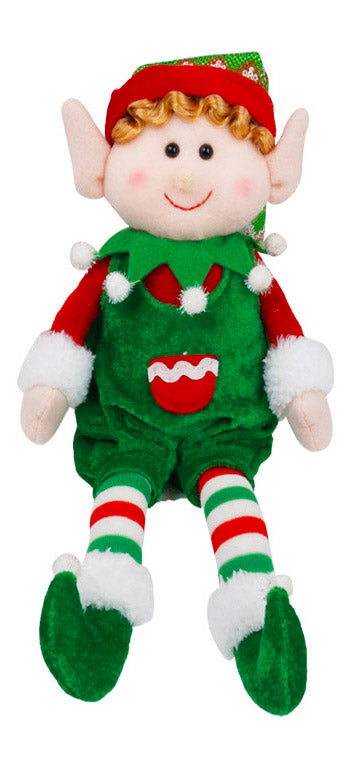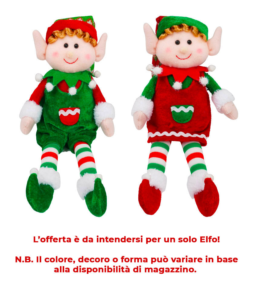 Pupazzo Elfo Natalizio H30 cm Seduto in Tessuto Verde o Rosso