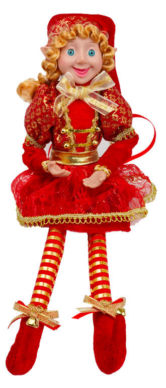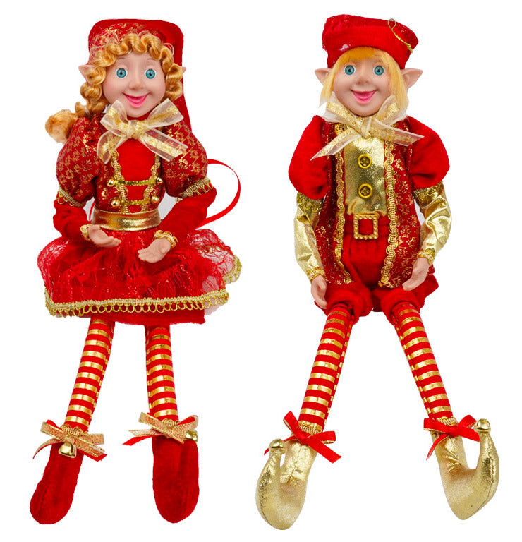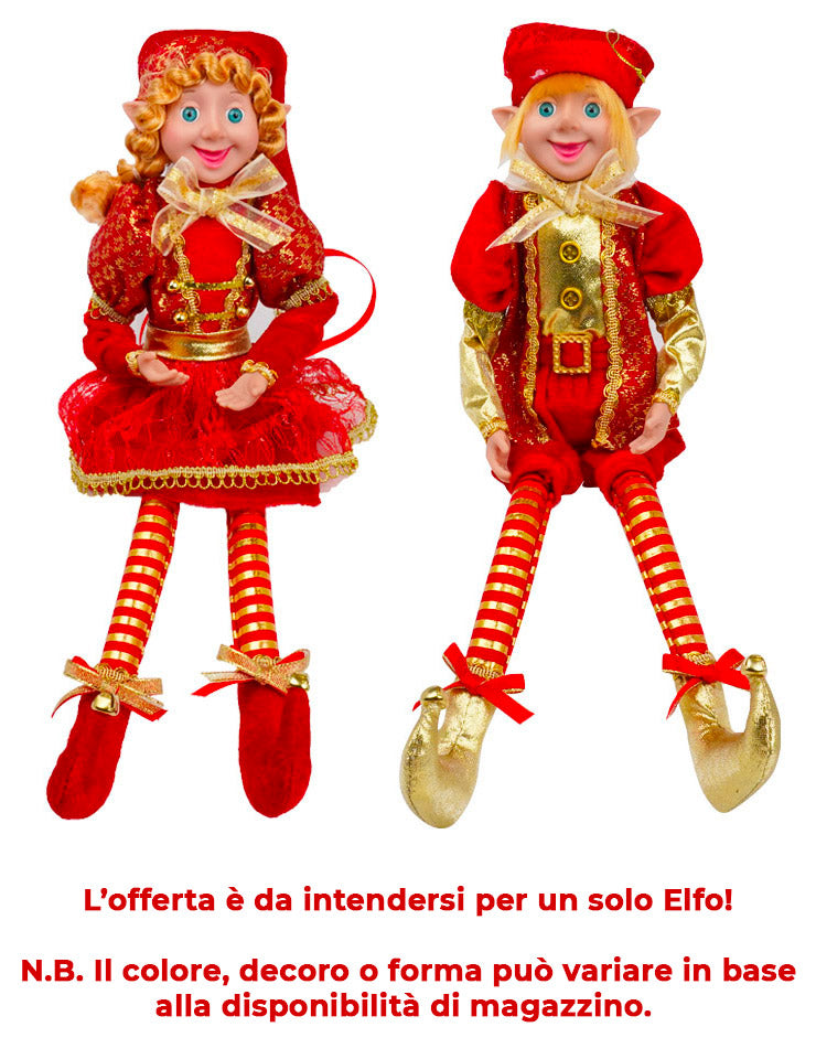 Pupazzo Elfo Natalizio H45 cm in Tessuto Rosso e Oro