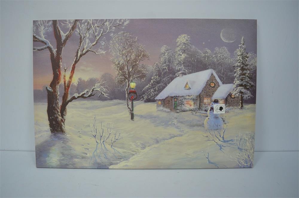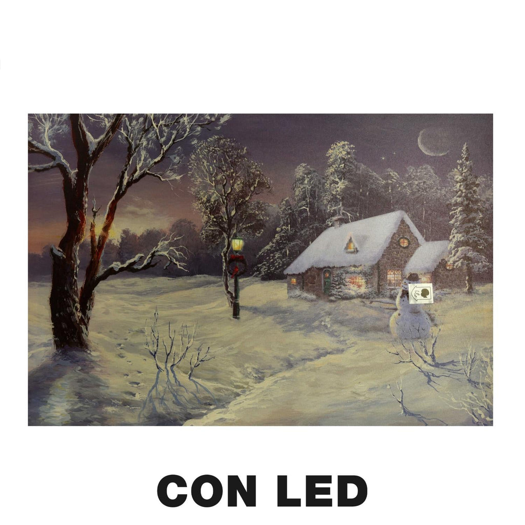 Quadro con led legno casa innevata multicolor rettangolare cm 60x40xh1,8