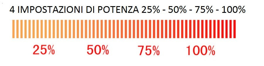 - 4 impostazioni di potenza 25% - 50% - 75% - 100%