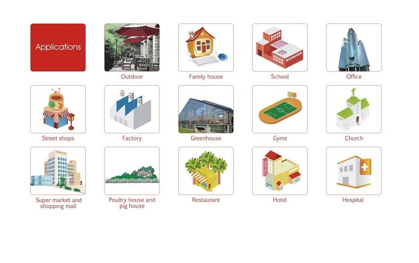 Riscaldatore ad infrarossi ideale per esterni e interni, bar, alberghi, serre, palestre, hotel, chiese, uffici ed in tutte le attività all'aperto che richiedono un riscaldamento mirato, economico ed immediato.