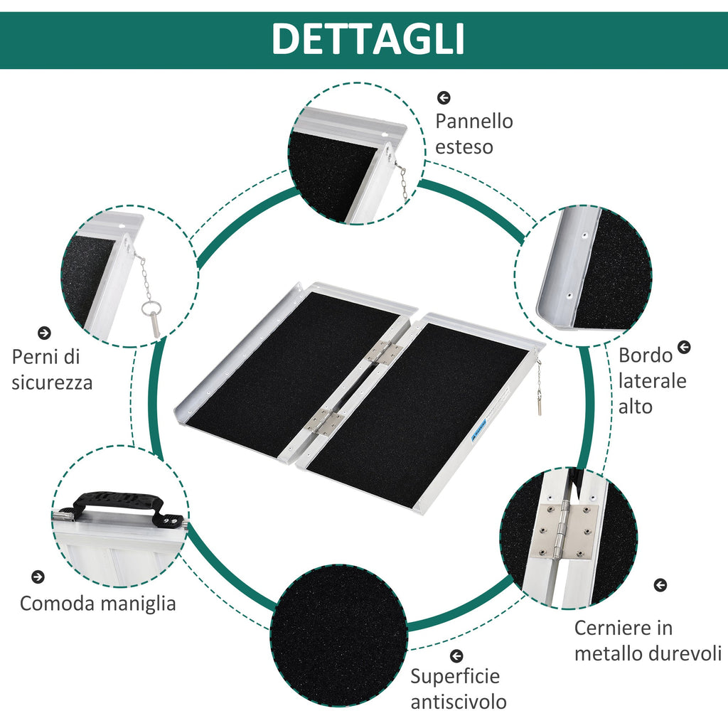 Rampa per Sedia a Rotelle Pieghevole Antiscivolo in Alluminio 61x72 cm