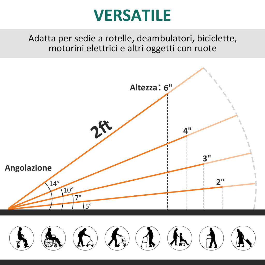 Rampa pieghevole multiuso, adatta a diverse situazioni d'uso, come rampa per sedia a rotelle, rampa per moto o bicicletta