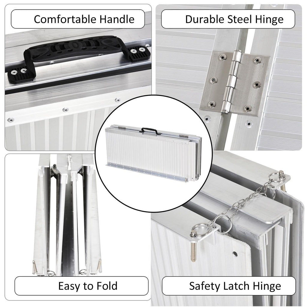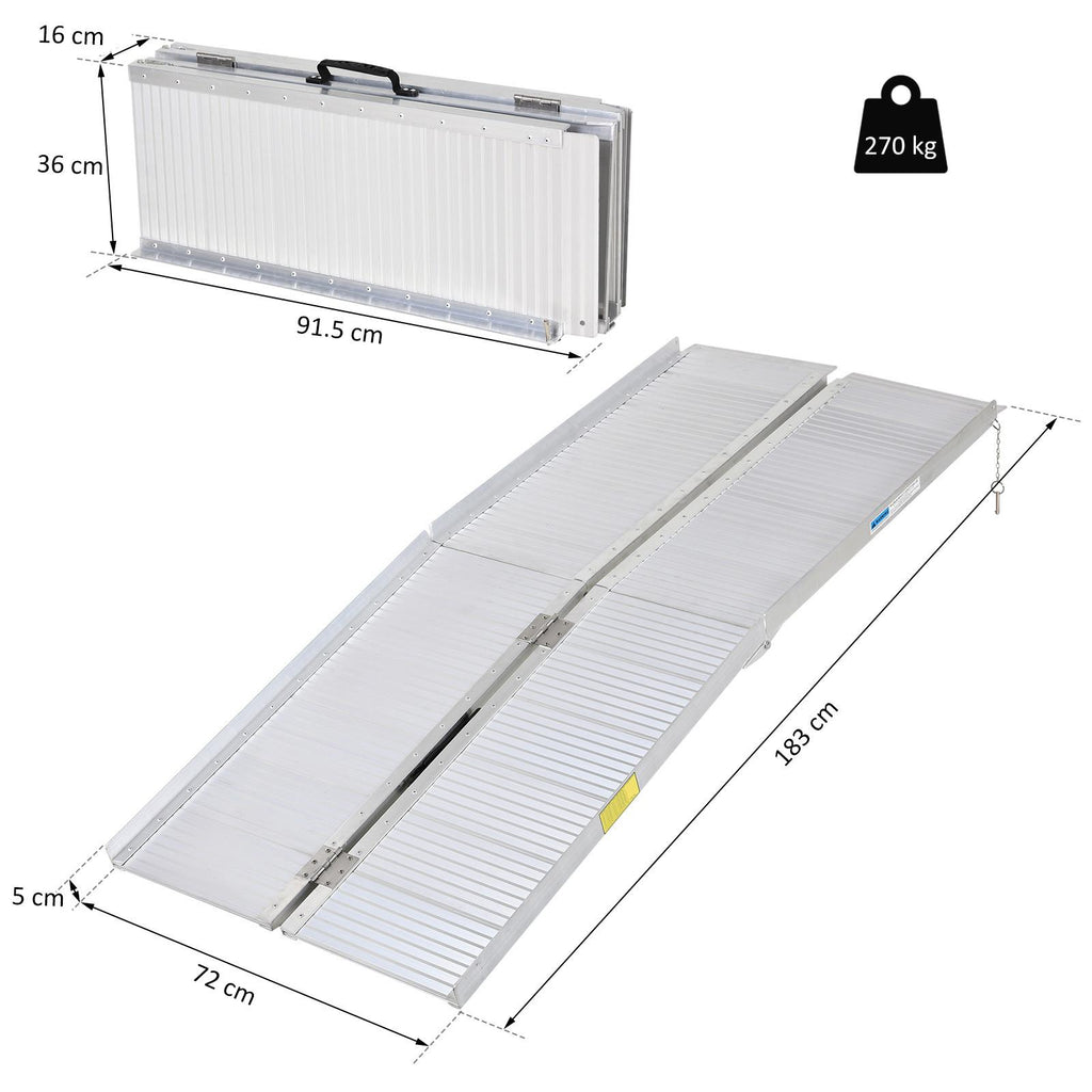 Rampa per Sedia a Rotelle Pieghevole Max 270 Kg in Alluminio Antiscivolo