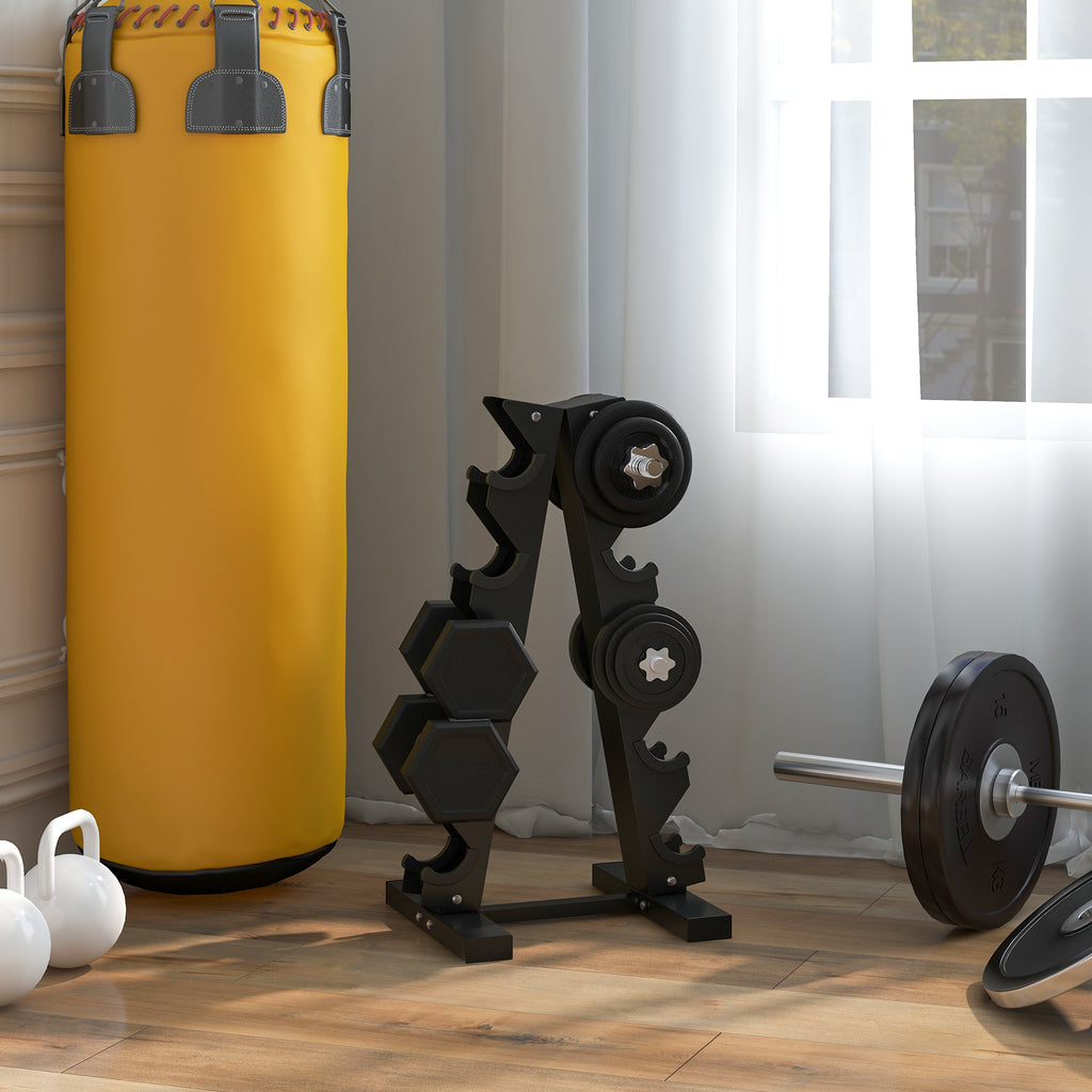 - DESIGN PRATICO: Gli inserti in plastica di questa rastrelliera impediscono di danneggiare i manubri. L'ampia base con cuscinetti antiscivolo consente di evitare imprevisti quando si prendono o si ripongono i diversi pesi