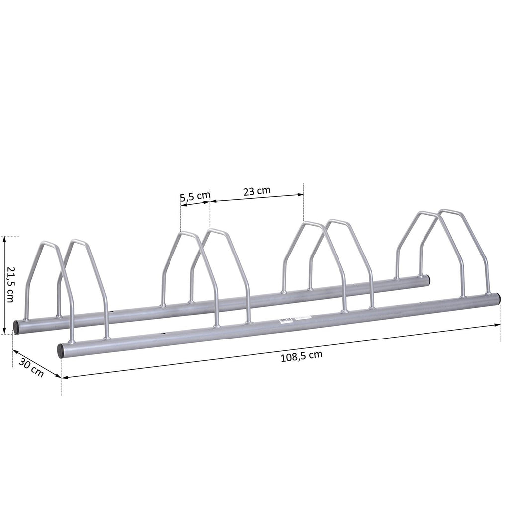 Rastrelliera Portabici 4 Posti in Acciaio 108.5x30x21.5 cm Grigia