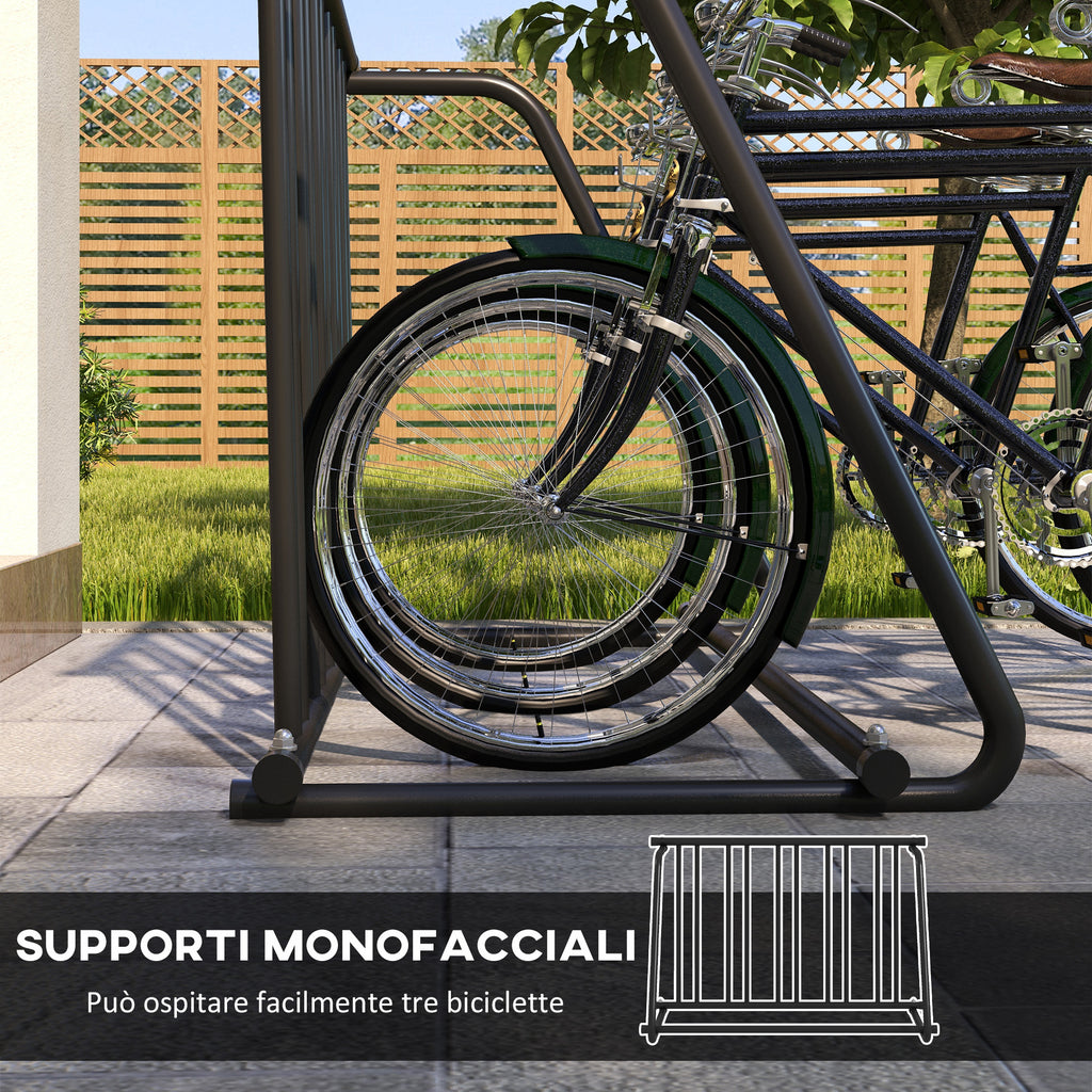 Rastrelliera Portabiciclette a 3 Posti da Esterno 114x58x75cm Nero