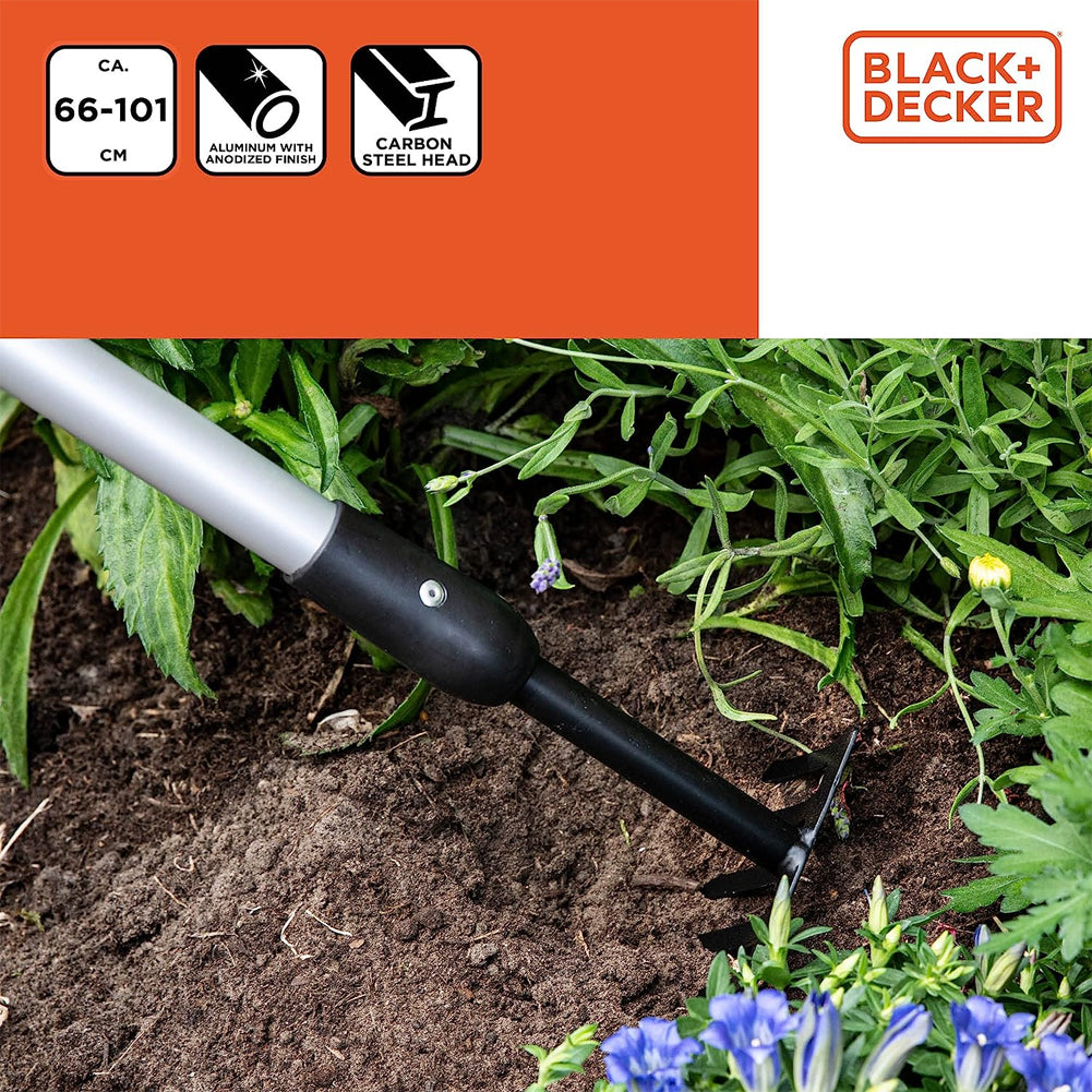 Rastrello da Giardino a 5 Denti Telescopico 66-10 cm in Acciaio al Carbonio Black & Decker