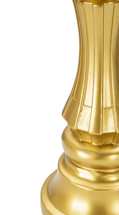 Il Re degli scacchi dorato è un pezzo pregiato che si distingue per la sua eleganza e raffinatezza. Le sue decorazioni nere conferiscono un tocco di mistero e fascino, aggiungendo un'ulteriore nota di eleganza al pezzo. Questo Re è una vera e propria opera d'arte, che non solo rende il gioco degli scacchi più affascinante, ma si trasforma anche in un oggetto di decorazione per la casa, garantendo una nota di stile e raffinatezza.