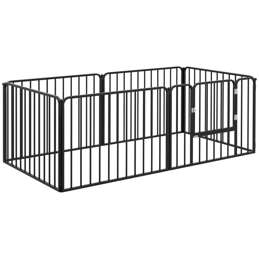 Recinto per Cani a 6 Pannelli Modulabili da Interno ed Esterno 164x83x60 cm in Acciaio Nero