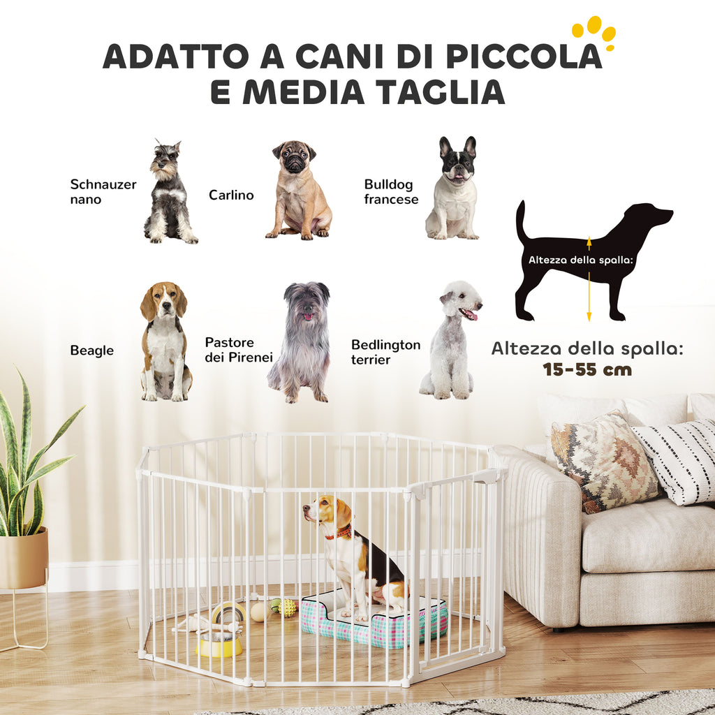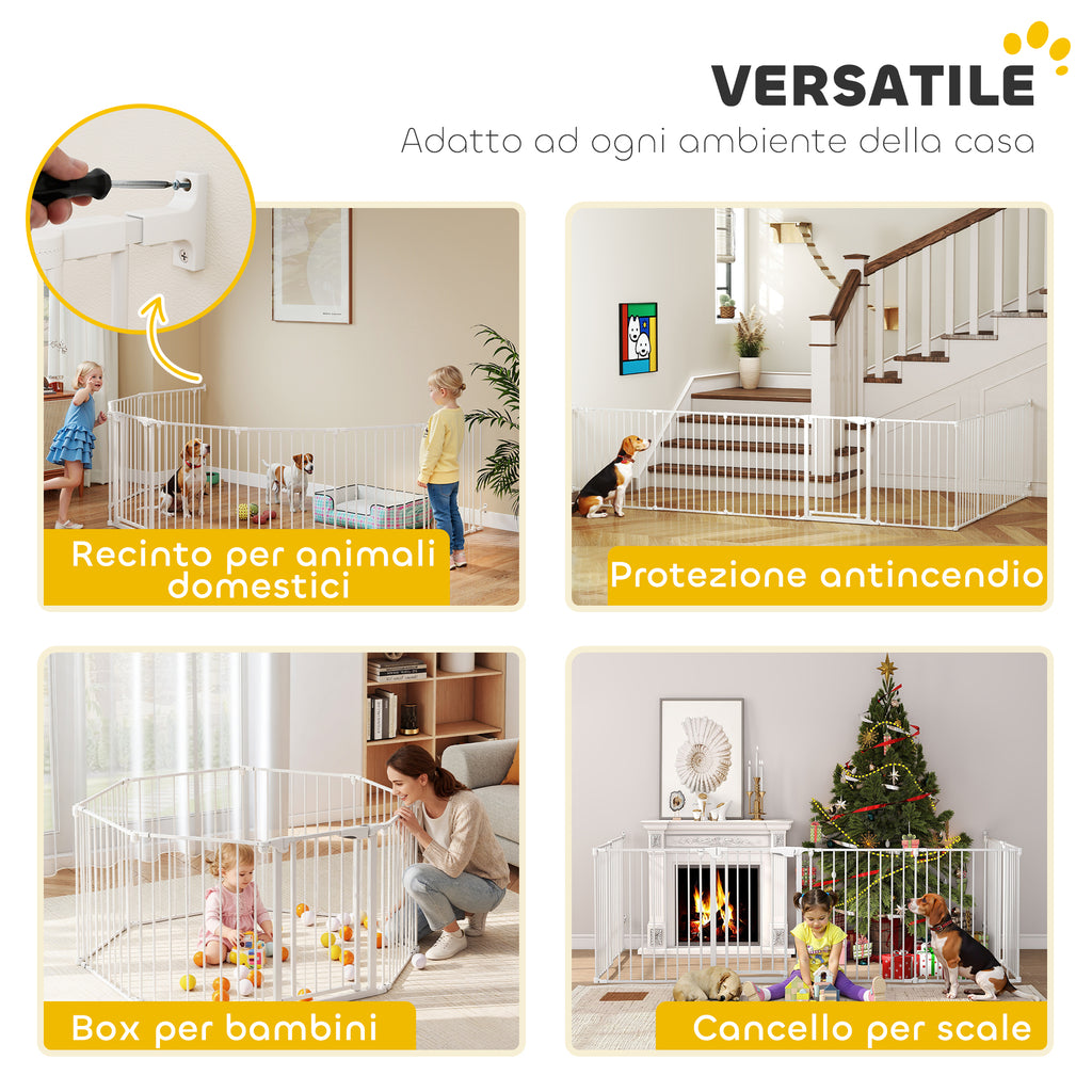 • USO VERSATILE: Gli 8 pannelli di questo recinto per cani può assumere configurazioni a ottagono, quadrato o a L. È anche possibile fissarlo alla parete e usarlo sulle scale o come barriera protettiva per caminetti o separé, a seconda delle esigenze