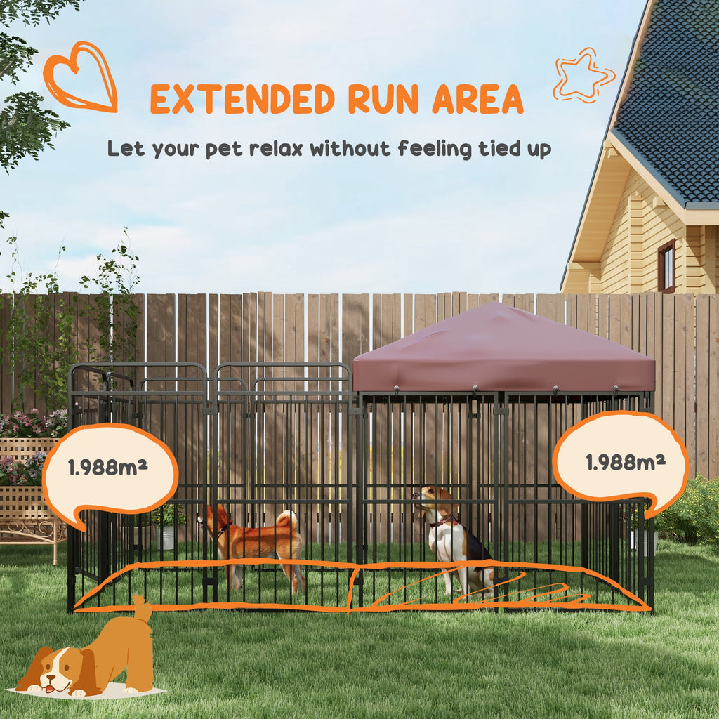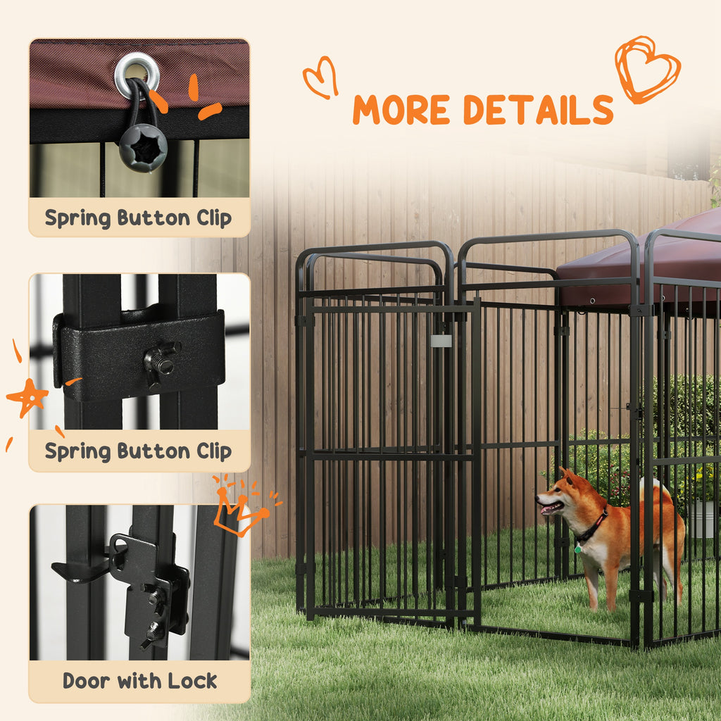 Recinto per Cani da Esterno con Tetto 282x121x159 cm in Metallo Marrone