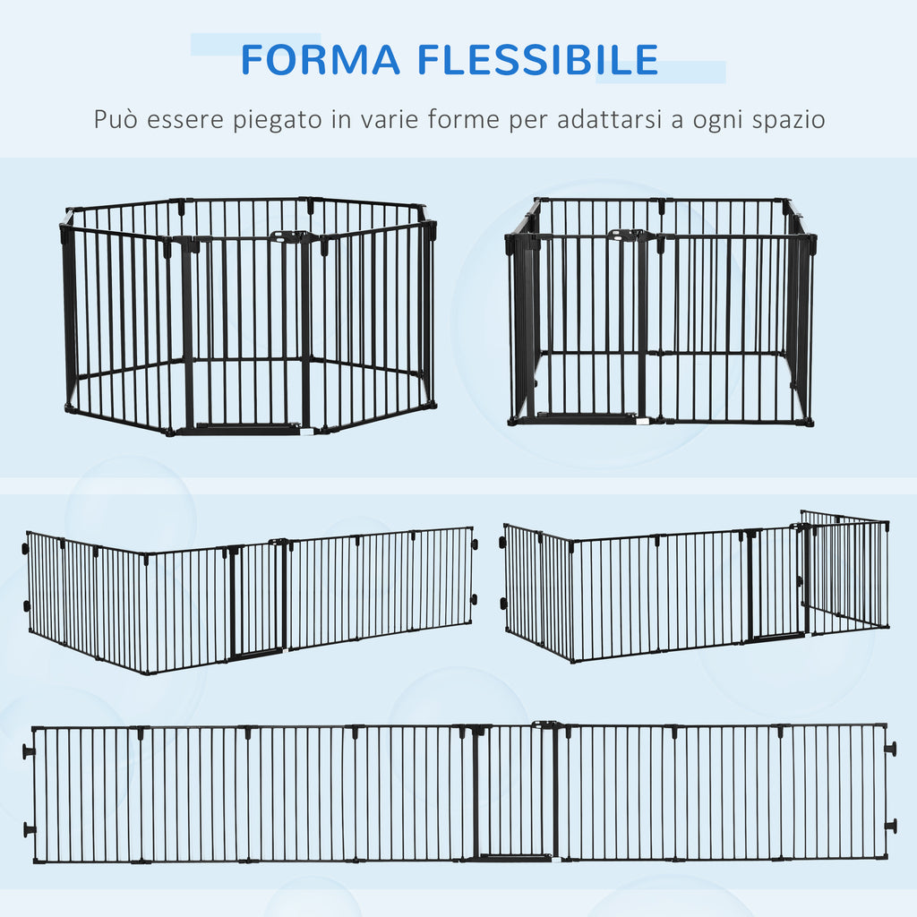 Recinto per Cani Gatti Pieghevole 482,5x2x76 cm 8 Sezioni in Acciaio Nero