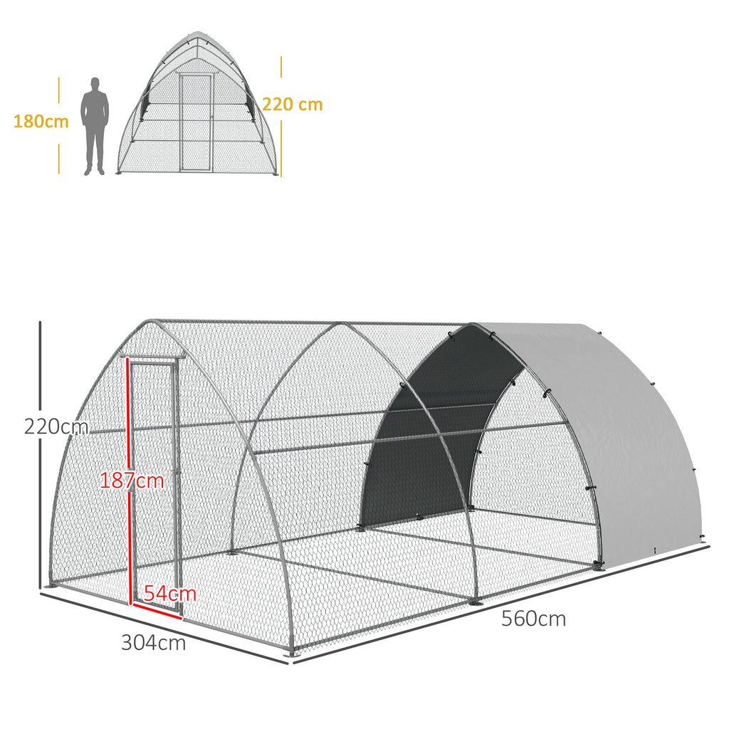 Recinto per Galline per 14-18 Animali con Porta Bloccabile 3x5,6x2,2 m in Acciaio Argento