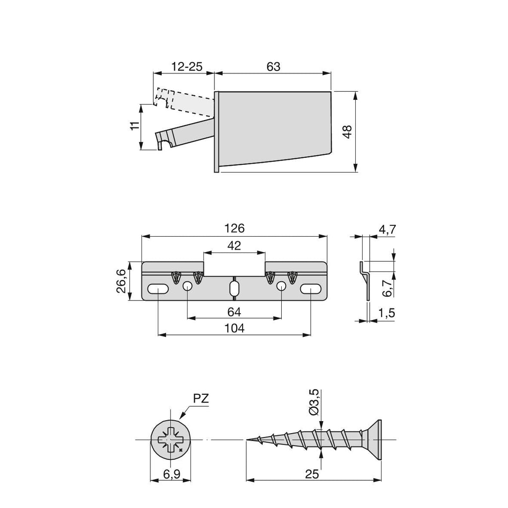 - La collocazione dei reggipensili sulla parete si realizza mediante piastrina inclusa.