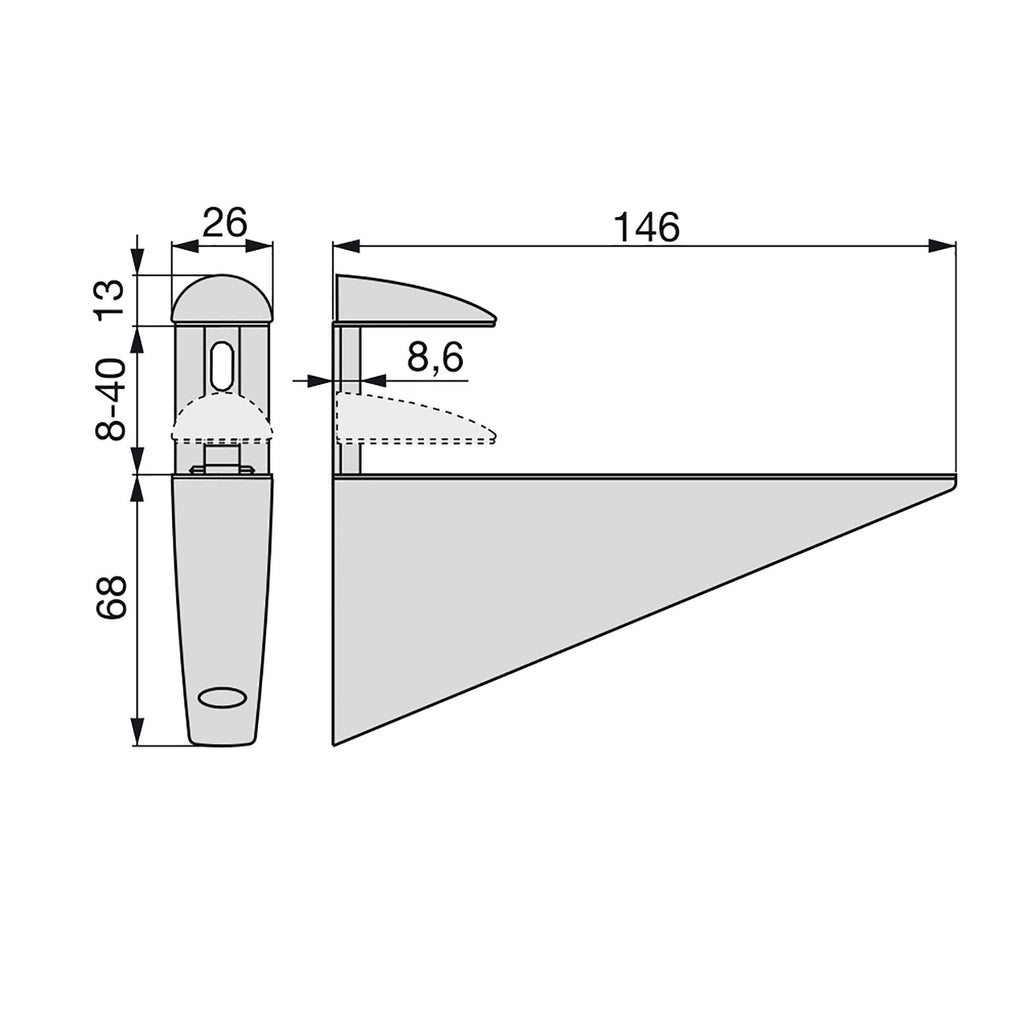 - Dispongono di un appoggio inferiore mobile che stringe la mensola alla copertura superiore.
