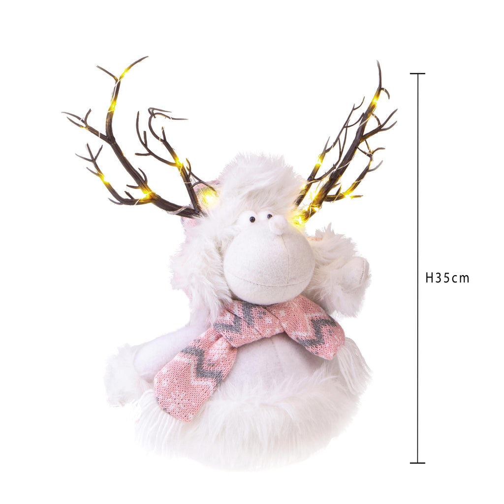 Renna con Led H35 cm in Tessuto Bianco/Rosa